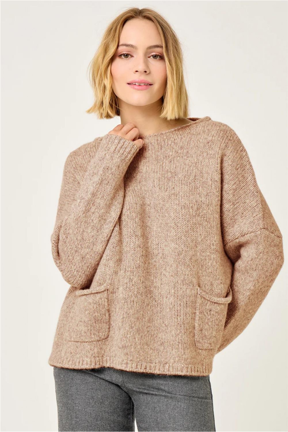 Jersey de punto de mujer recto Five liso bolsillos delanteros capuchino gris PW2530