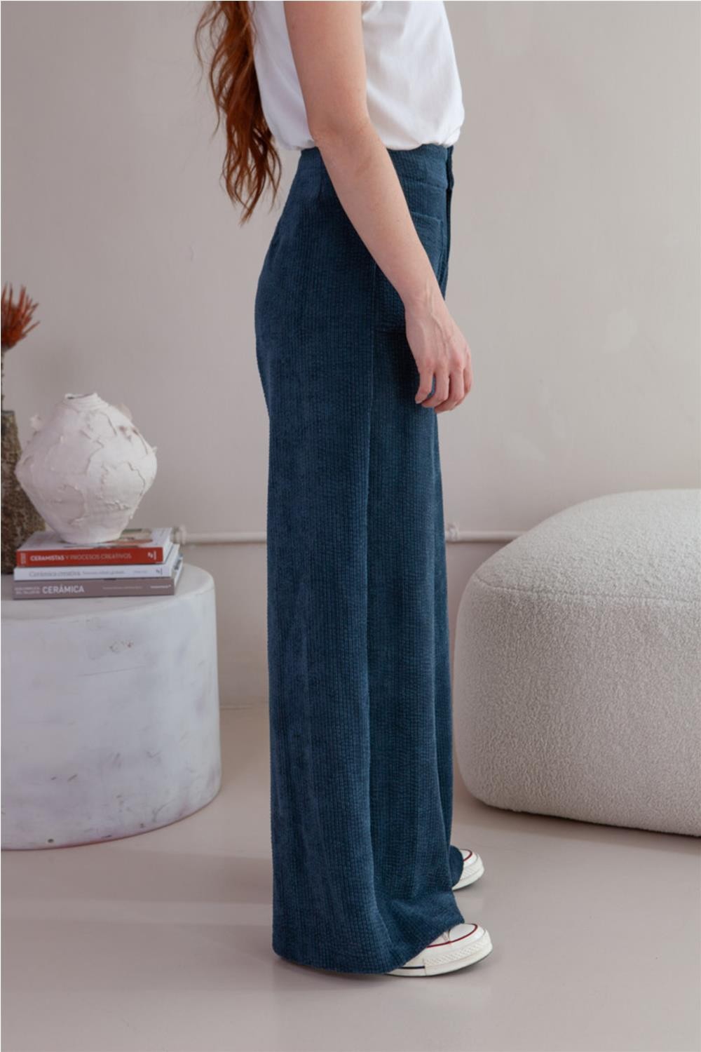 Pantalón de pana de mujer DAVIDE BERLIN Studio Manata suave bolsillos plastones azul marino DAVIDE BERLIN