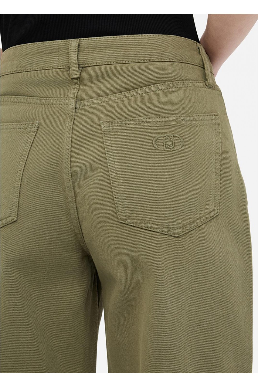 Pantalón de loneta de mujer recto Liu Jo tobillero cinco bolsillos verde militar UF5243T051A