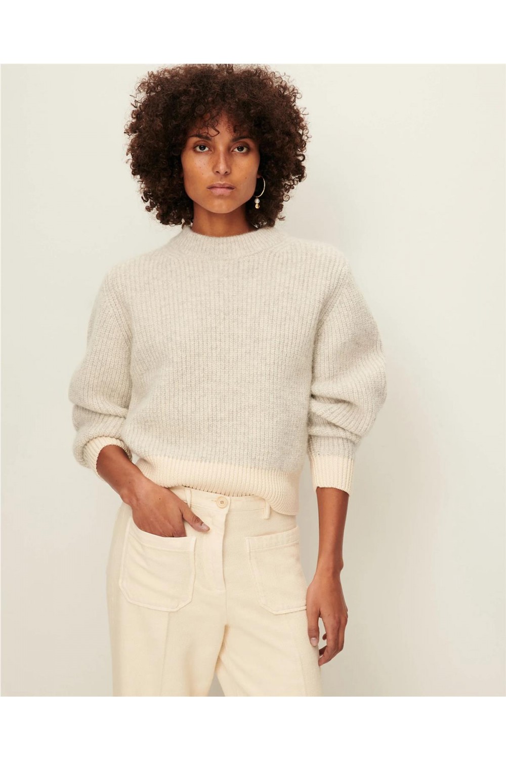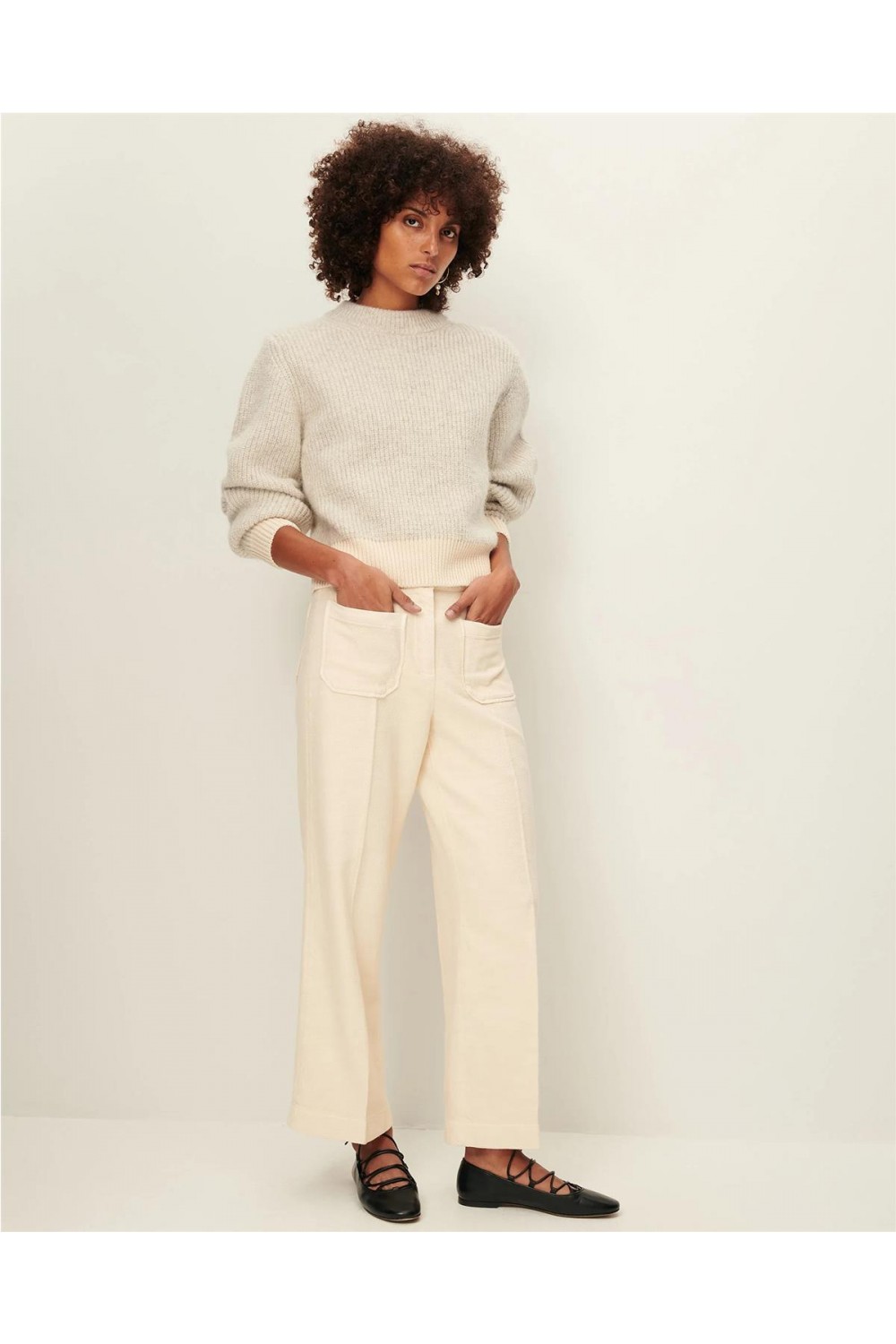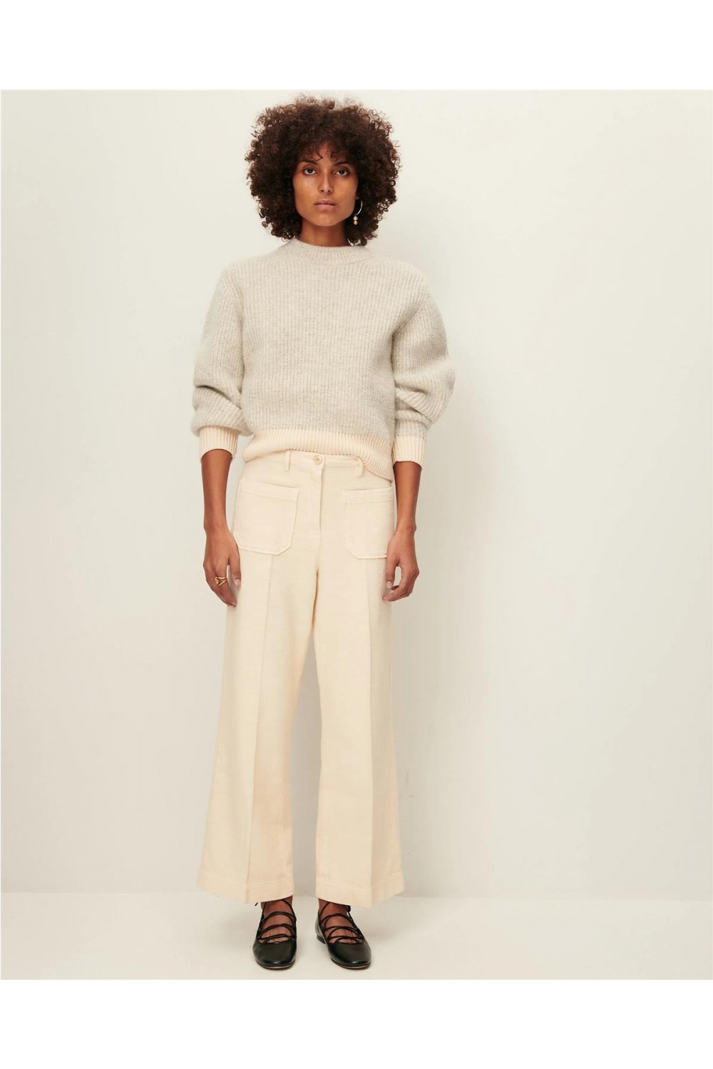 Pantalón de loneta de mujer Hendrick Sessun capri tricotina GOTS flor de sal verde humo HENDRICK