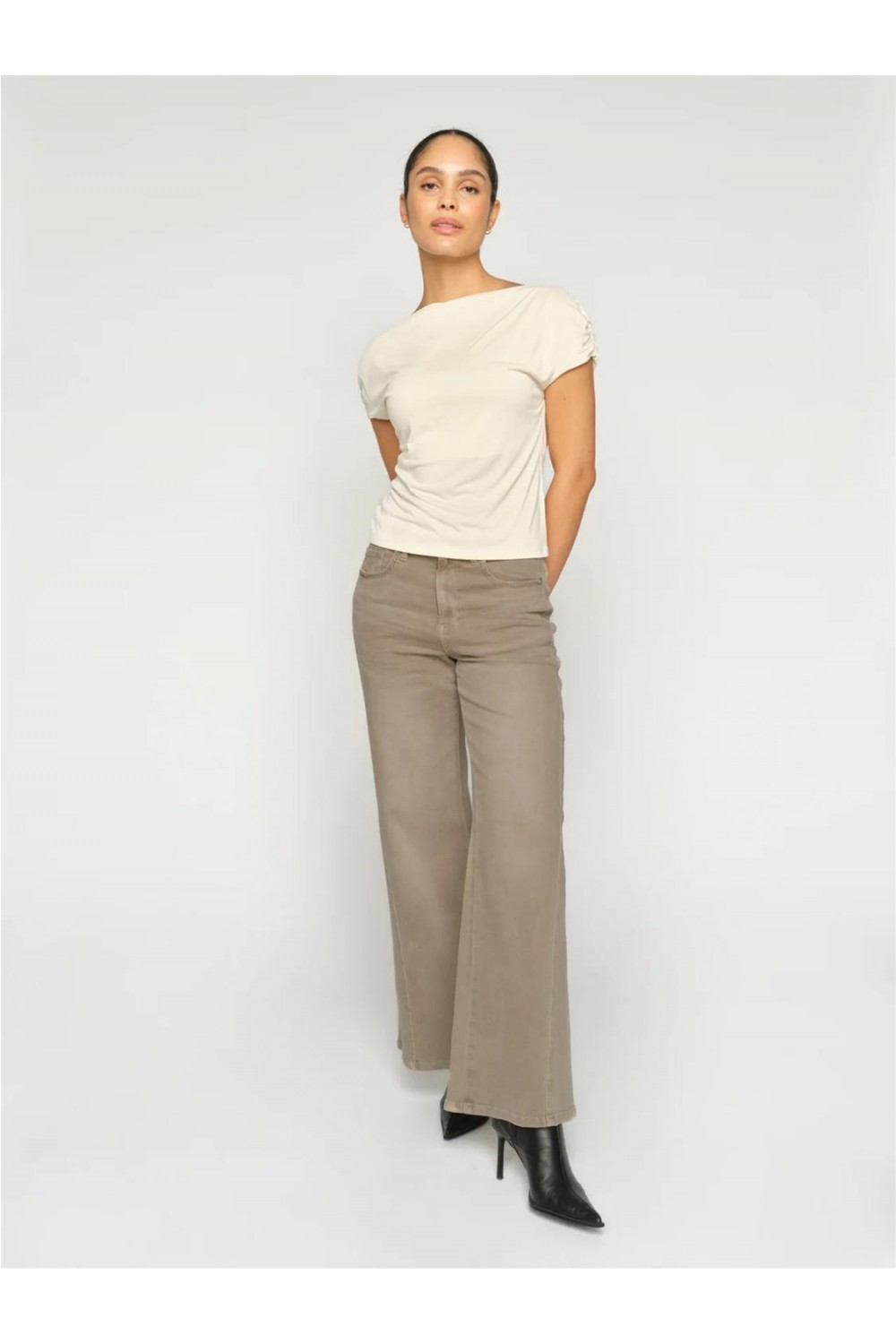 Pantalón loneta de mujer MMDara Shadow Mos Mosh pernera ancha atemporal gris claro marrón 176550