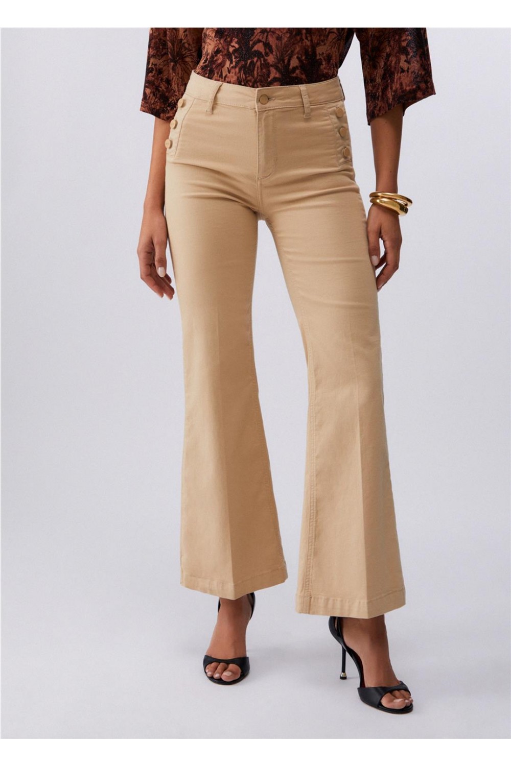 Pantalón de loneta en gabardina de algodón que incorpora la tecnología de cortes bottom up para esculpir la silueta con total comodidad. De talle alto, su diseño se distingue por una fila de botones frontales con logotipo y prácticos bolsillos, combinando un cierre de cremallera con una pernera que realza la armonía corporal de forma elegante. Una pieza esencial de aire sofisticado para un look impecable. Composición: 97 % algodón, 3 % elastano.