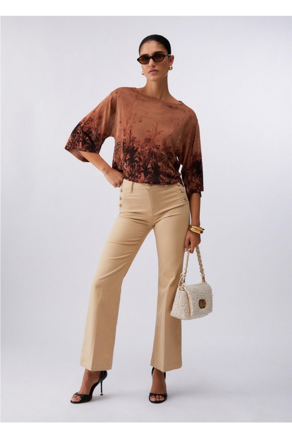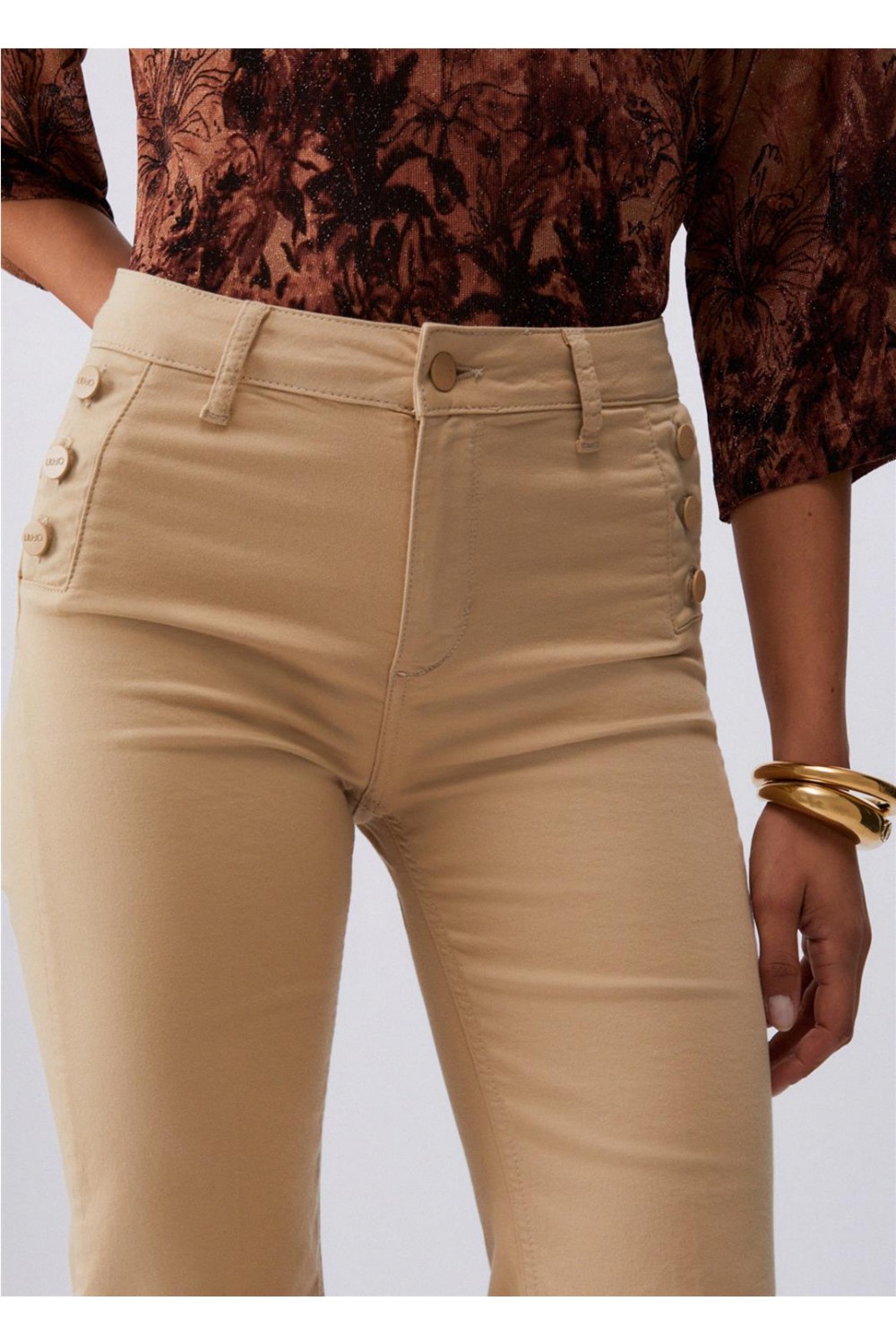 Pantalón de loneta de mujer Logo Liu Jo esculpir armonía impecable blanco crema beige WA6403T367A
