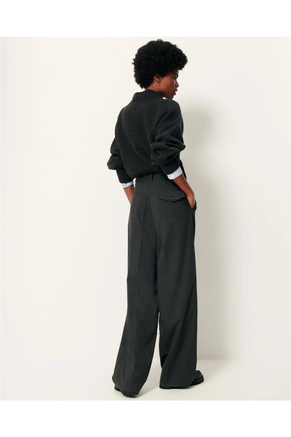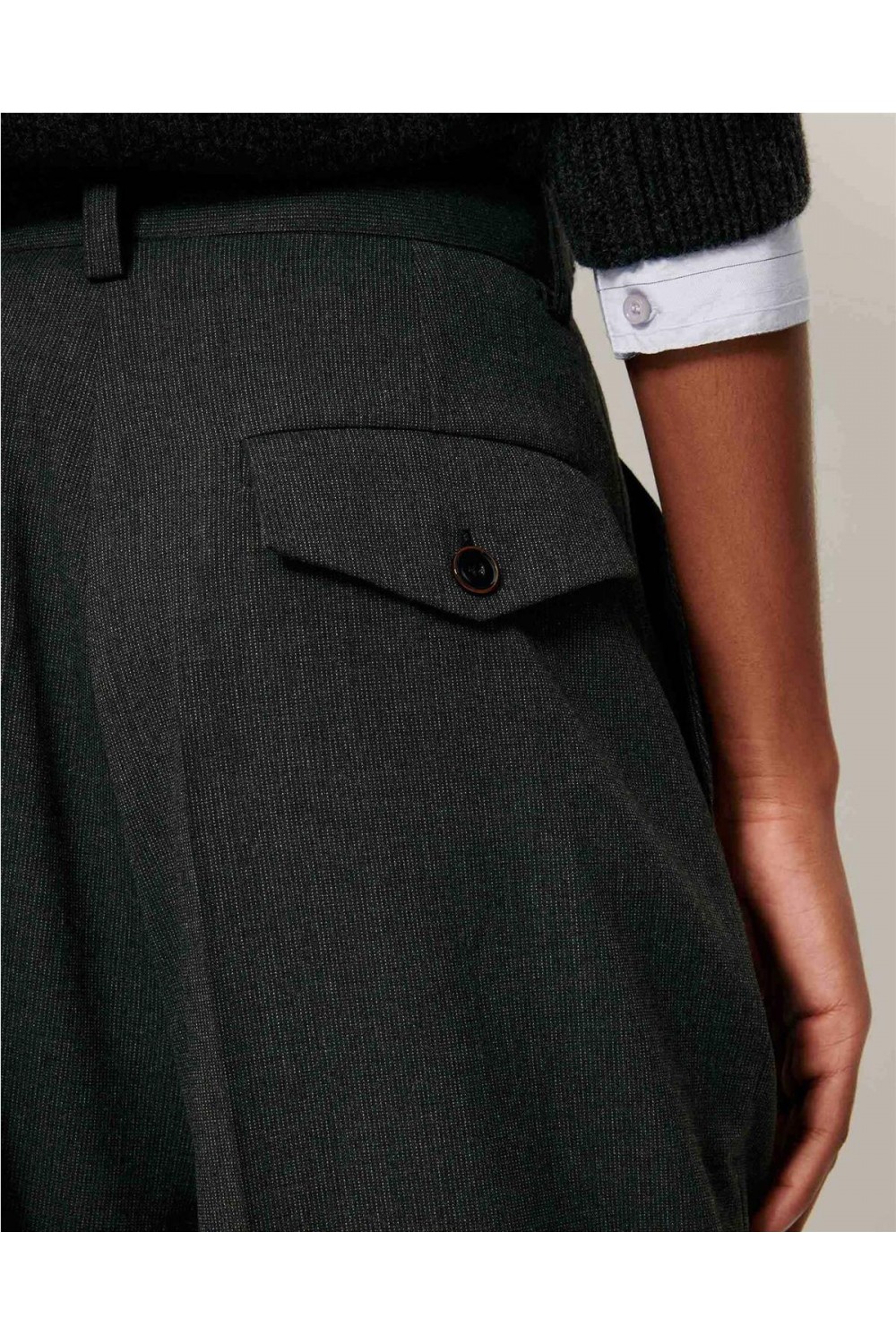 Pantalón de vestir de mujer Emilio Sessun inspiración masculina cinturilla gris arena EMILIO