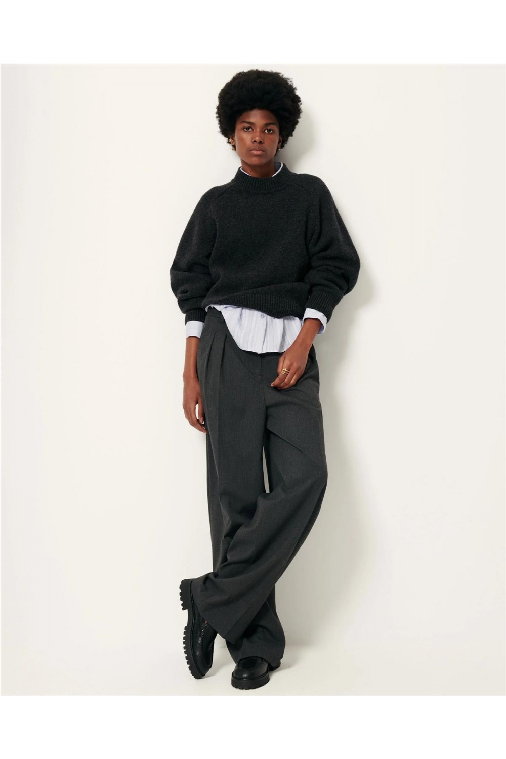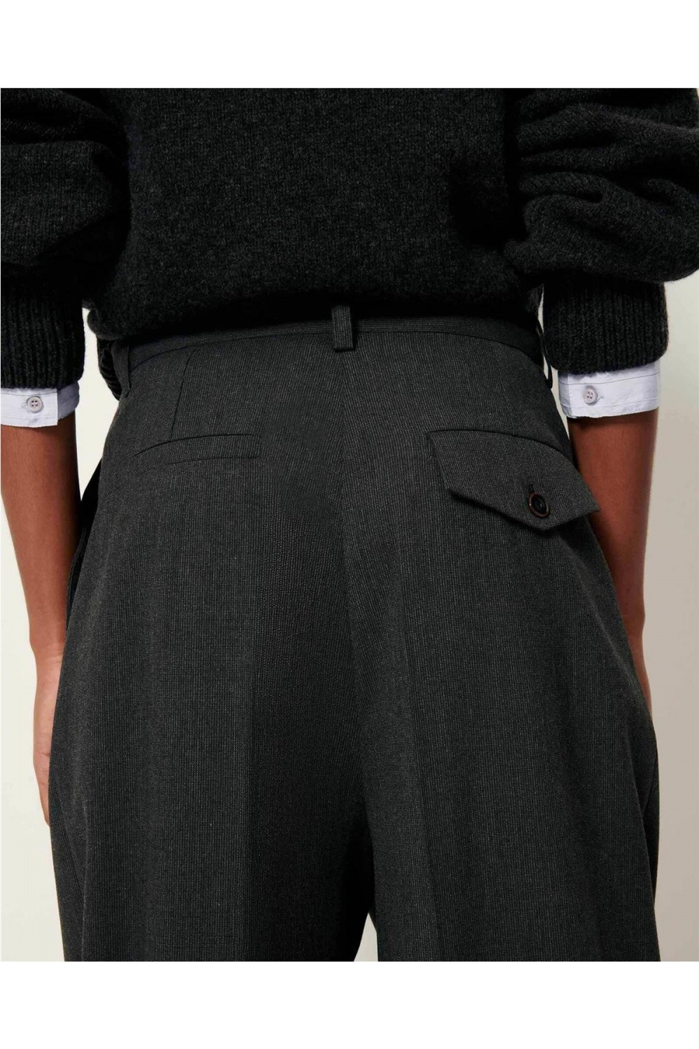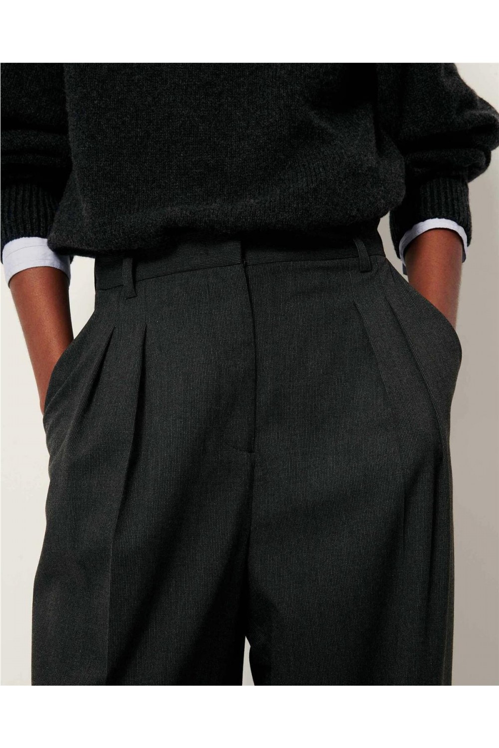 Pantalón de vestir con doble pinza, bolso francés y cinturilla. Inspiración masculina. Tejido elástico. Composición: 65 % poliéster, 31 % viscosa, 4 % elastano.