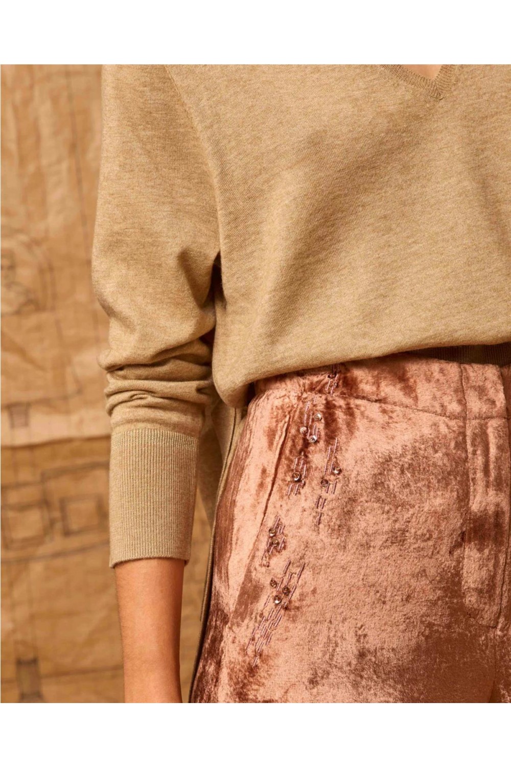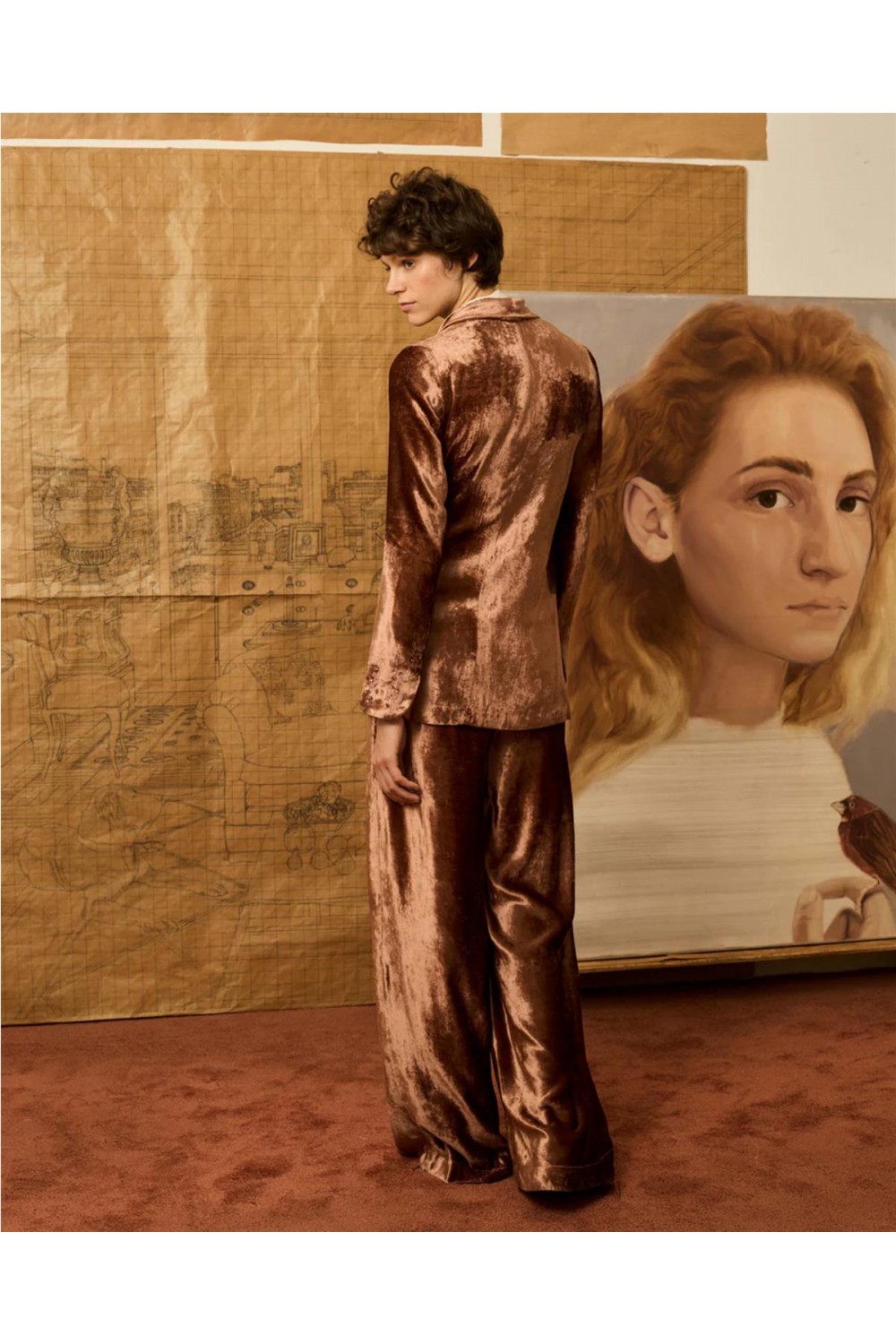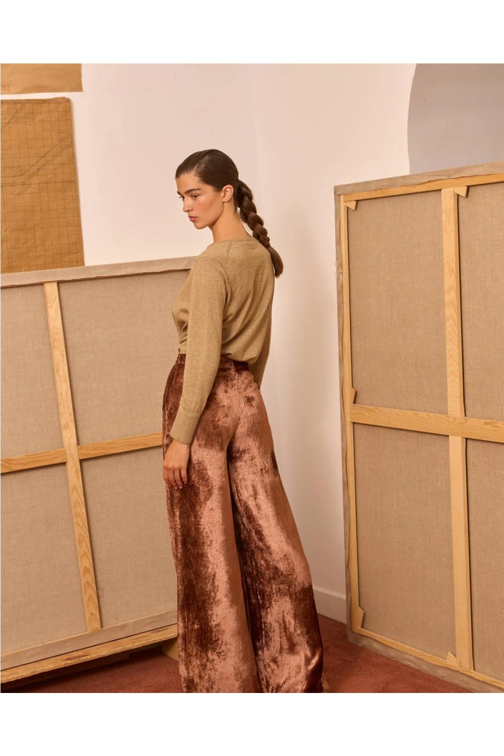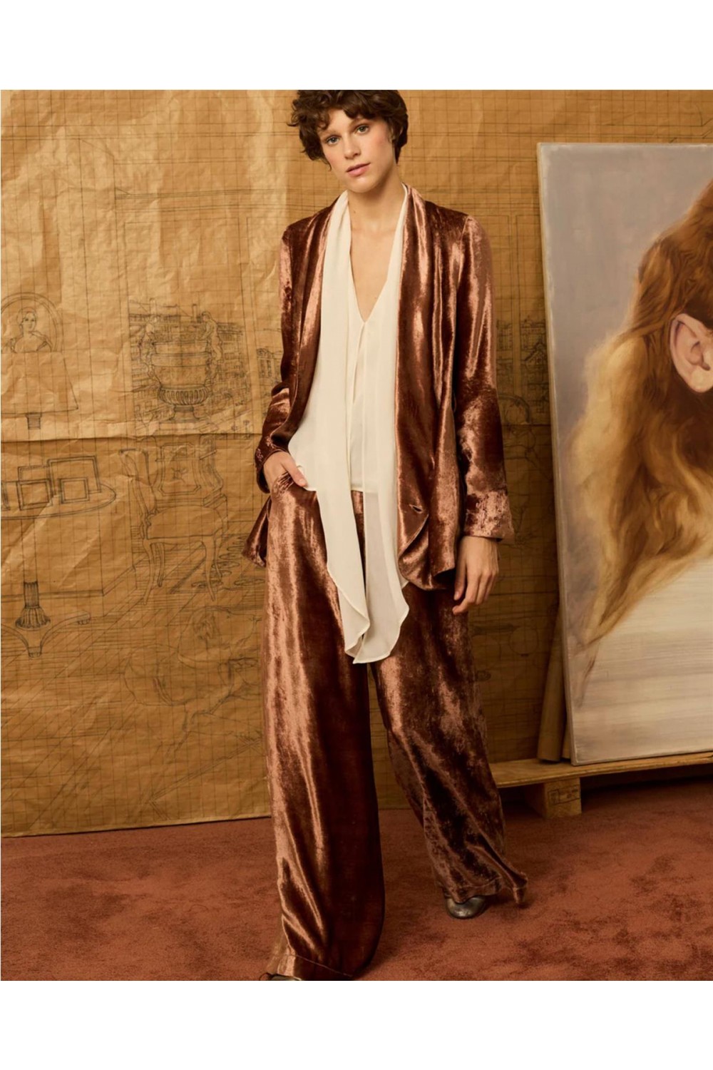 Pantalón de vestir de mujer terciopelo Is coming palazzo bordados piedras maquillaje 133.PAN.1334