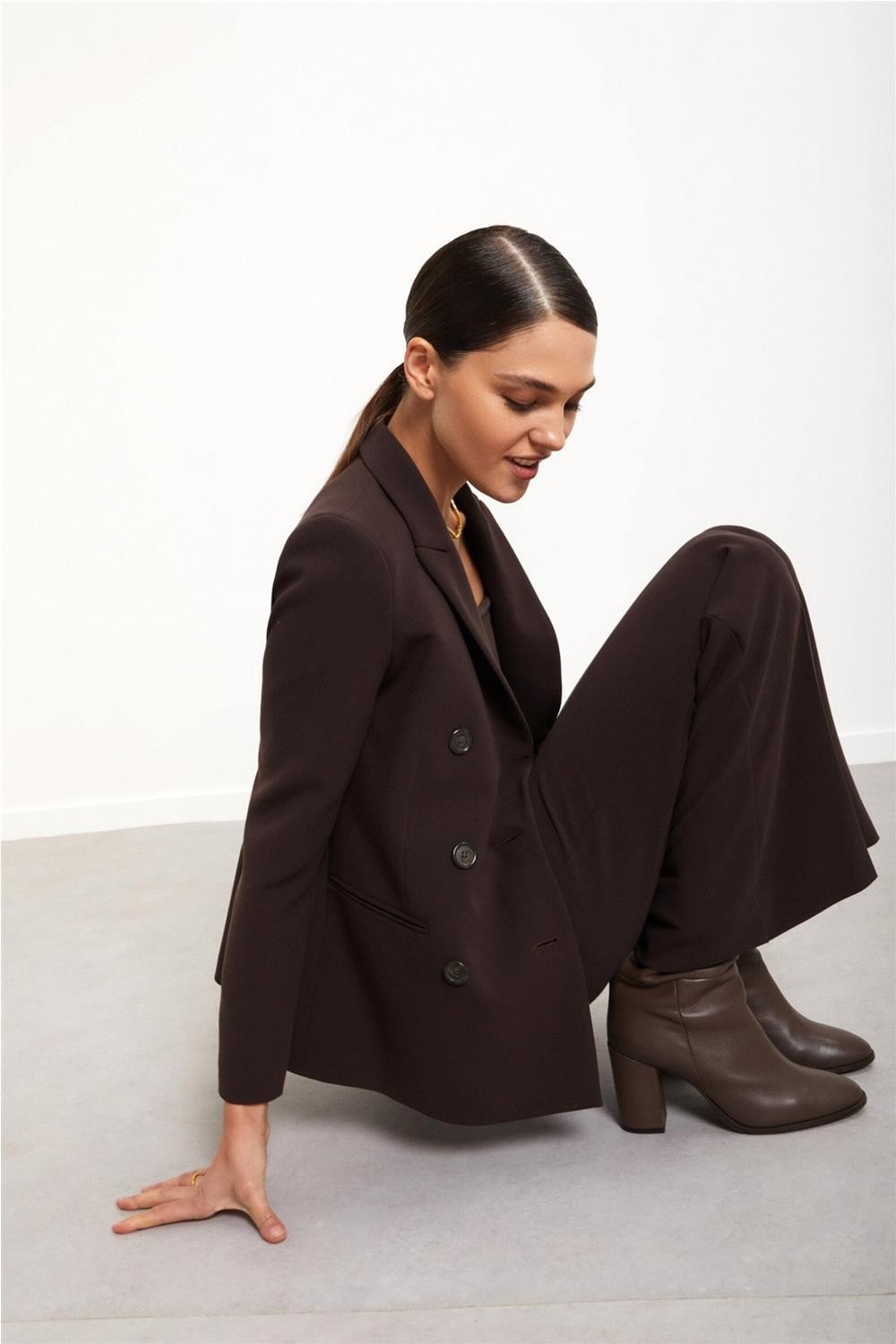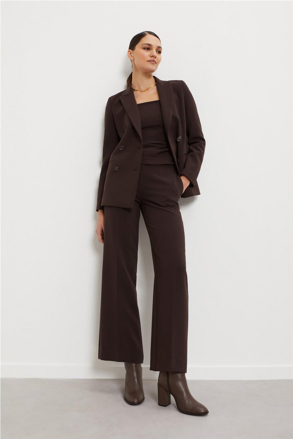 Pantalón de vestir de mujer palazzo Ottod Ame pernera ancha elegante chocolate DP9611-2