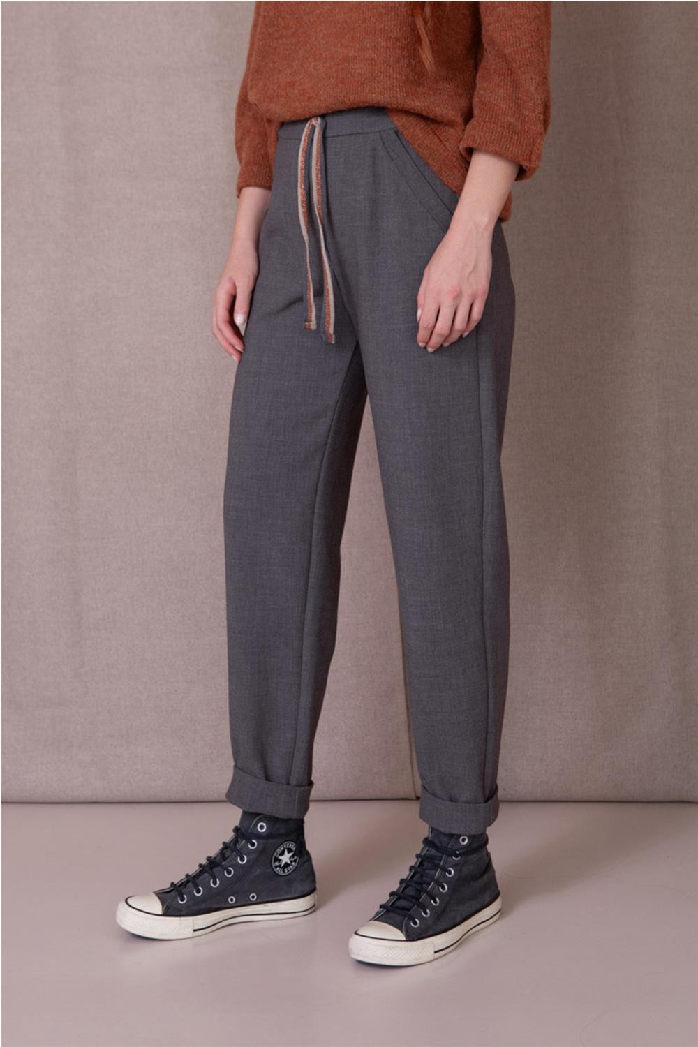 Pantalón de vestir de mujer OLIVER POP Studio Manata crepé fluida lurex gris acero negro OLIVER POP