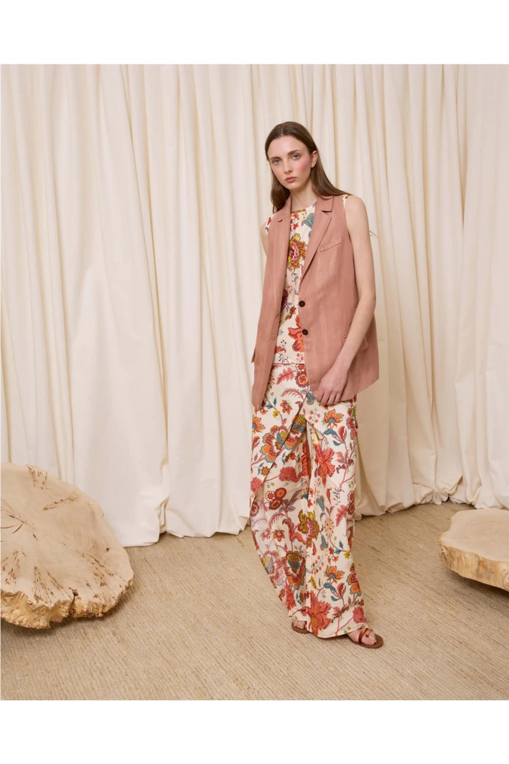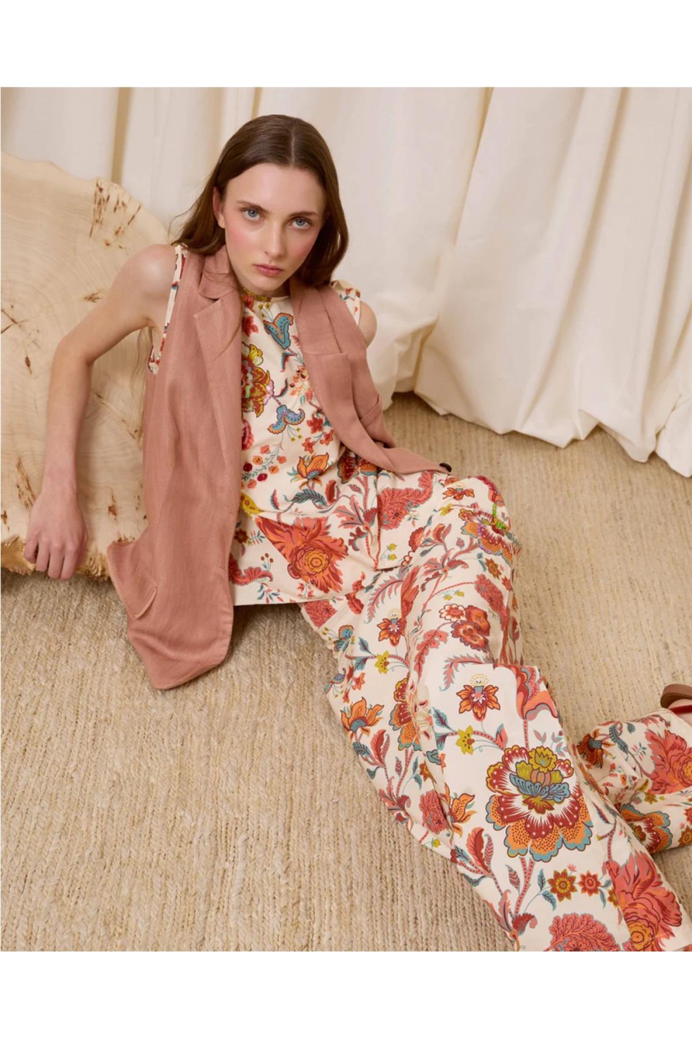 Pantalón de vestir de mujer flores Is coming pareo lentejuelas algodón multicolor 623.PAN.6232
