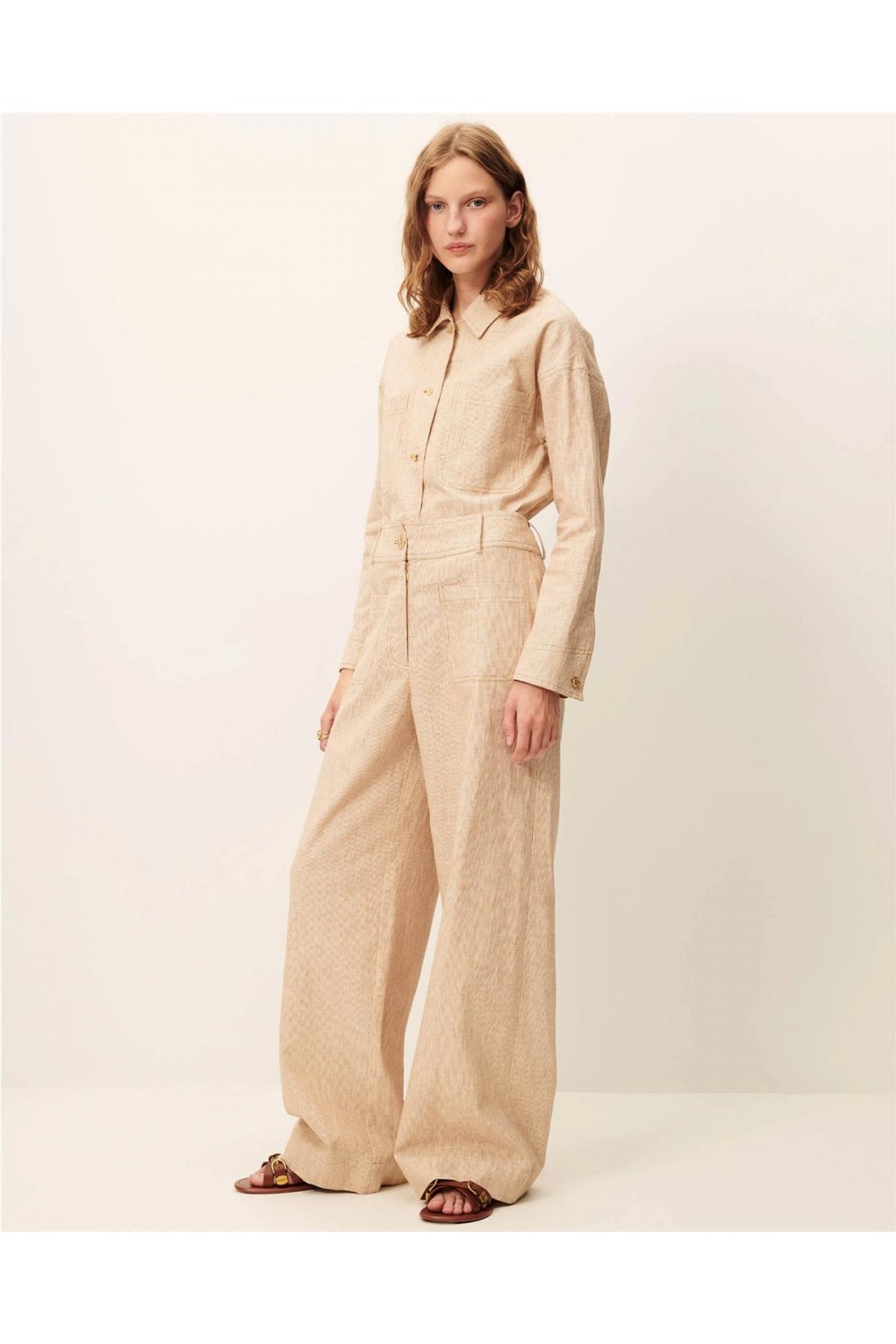 Pantalón de vestir de mujer Manhatti Sessun lona rústica minirayas Whiamber MANHATTI
