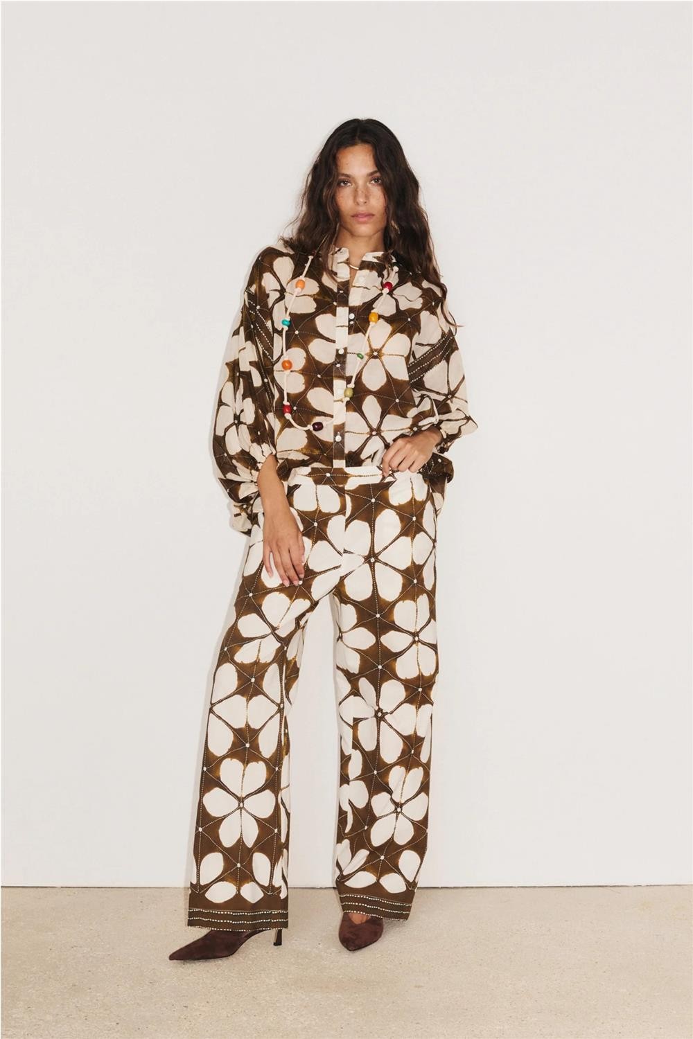 Pantalón de vestir de mujer LOTUS Stella Forest fluido ligero elástico marrón E26PA005