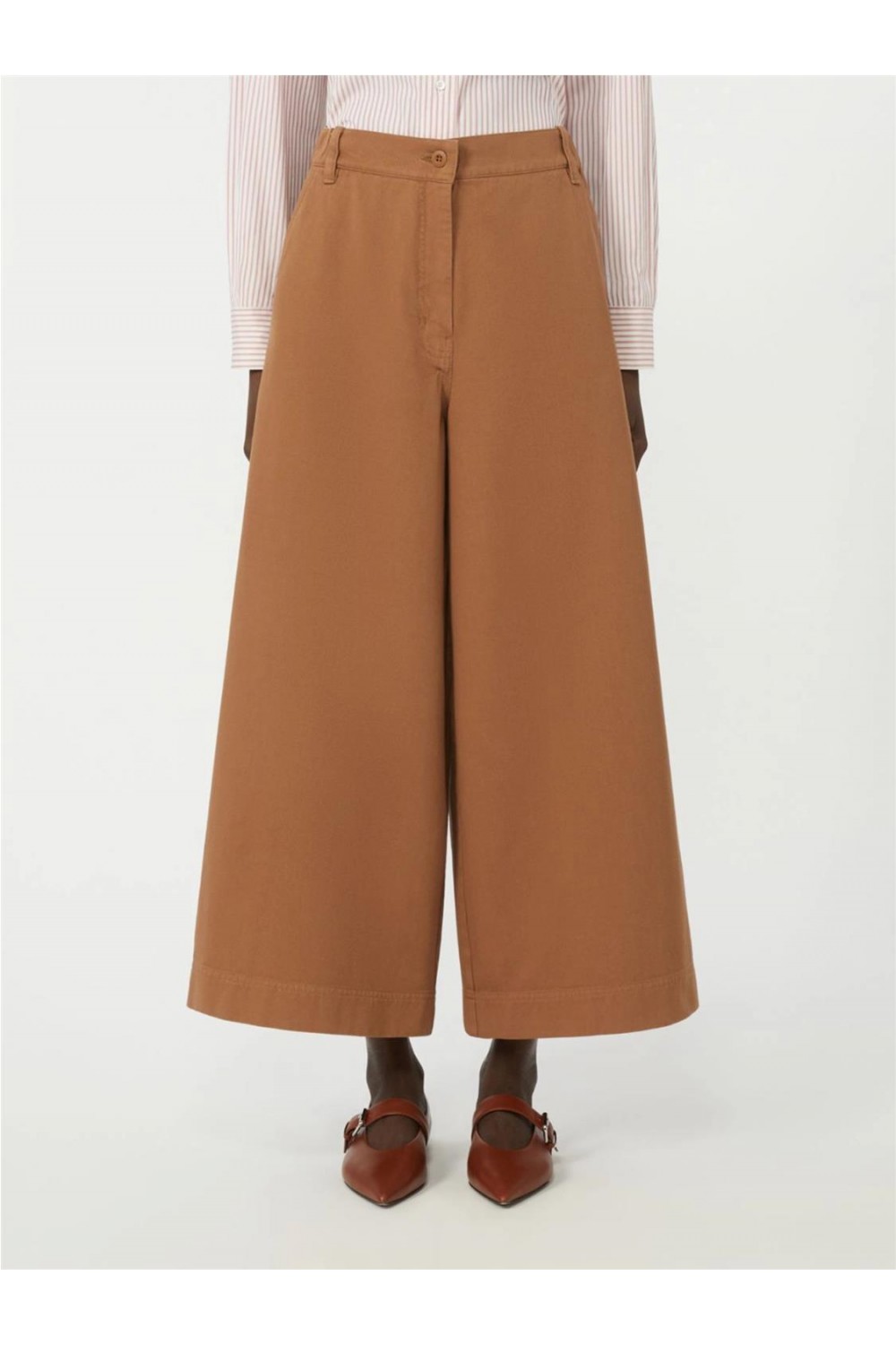 Pantalón de vestir de mujer WKDARIETE Max Mara cropped pernera ancha arena cuero WKDARIETE