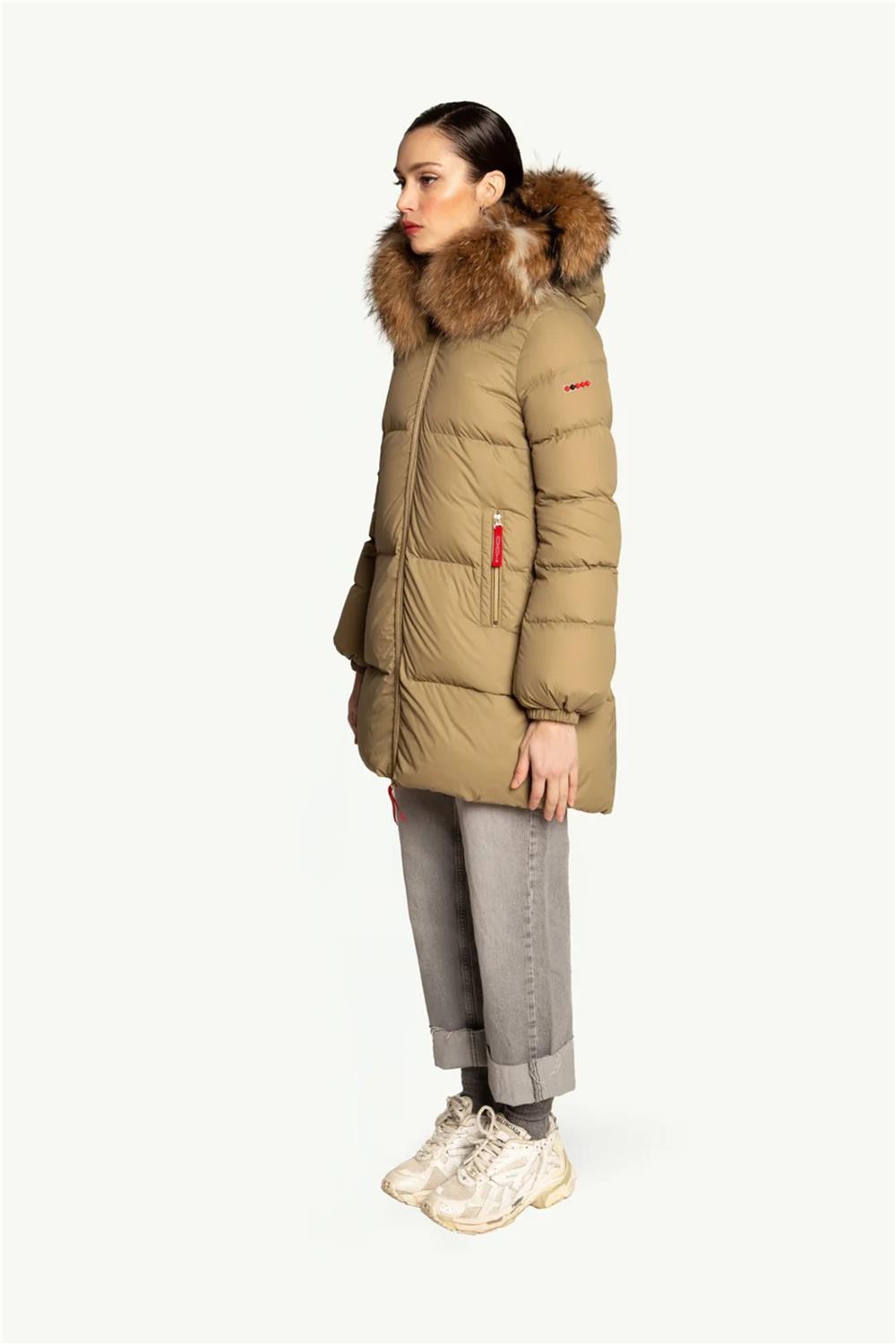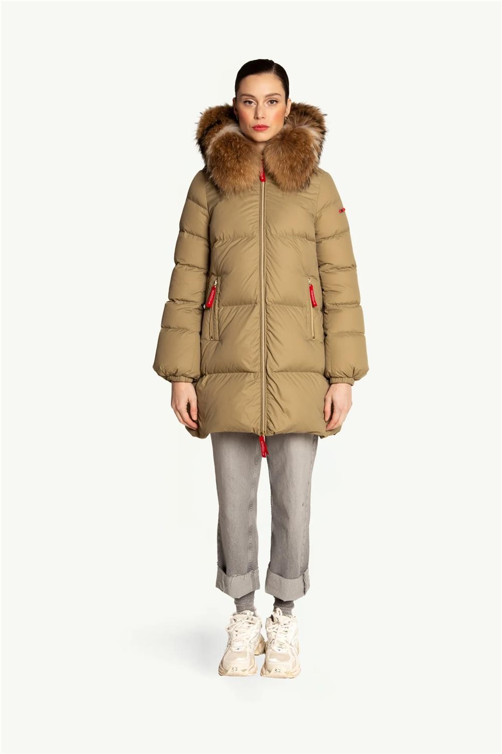 Plumas largo medio de mujer ALASKA Dichi pelo racoon desmontable blanco kaki ALASKA-4480