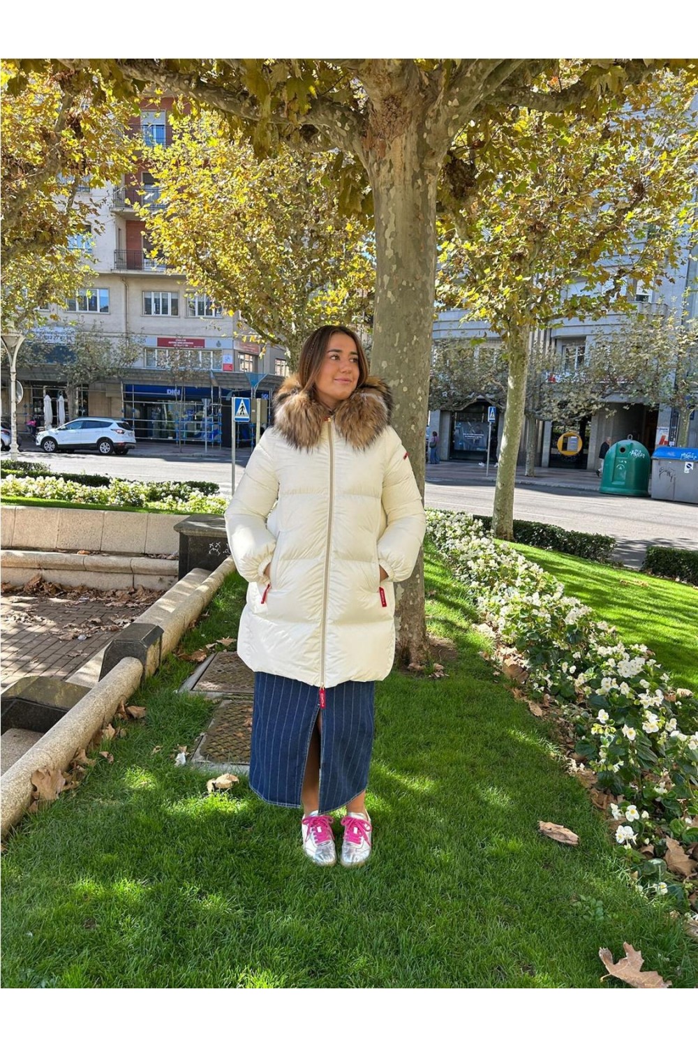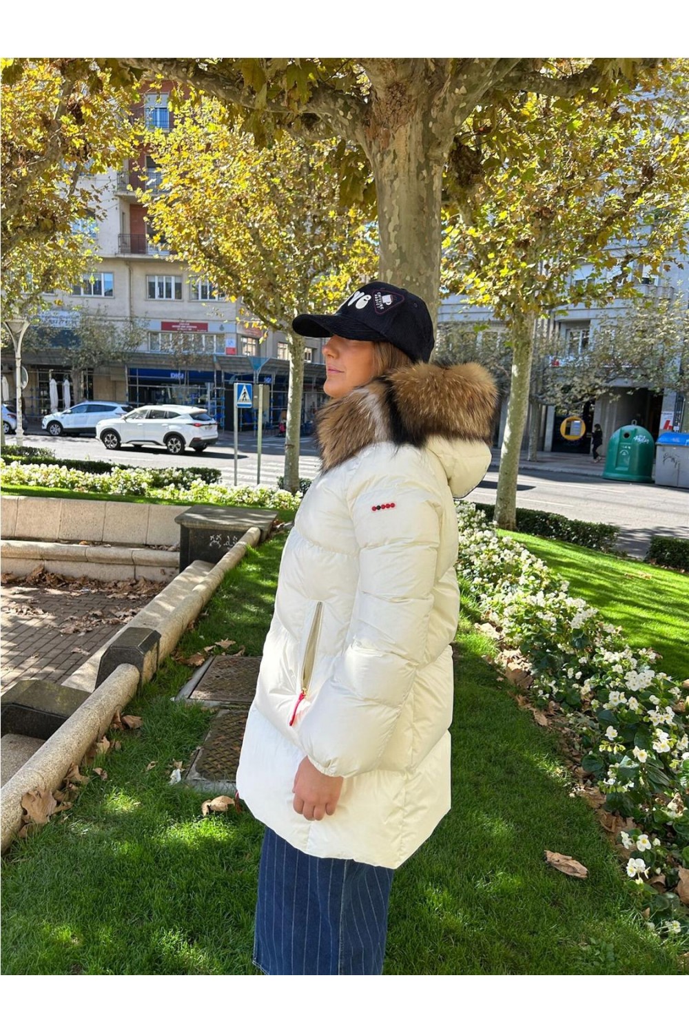 Plumas de largo medio, manga pegada y puño elástico. Corte recto. Cierre frontal con cremallera de doble carril. Bolsos frontales con cremallera y detalle de logo. Incorpora capucha con pelo racoon natural desmontable. Tejido en nylon. Alto aislamiento térmico y repelente al agua. COMPOSICION.- Tejido exterior: 100% poliamida; Relleno: 90% plumón de pato, 10% pluma.