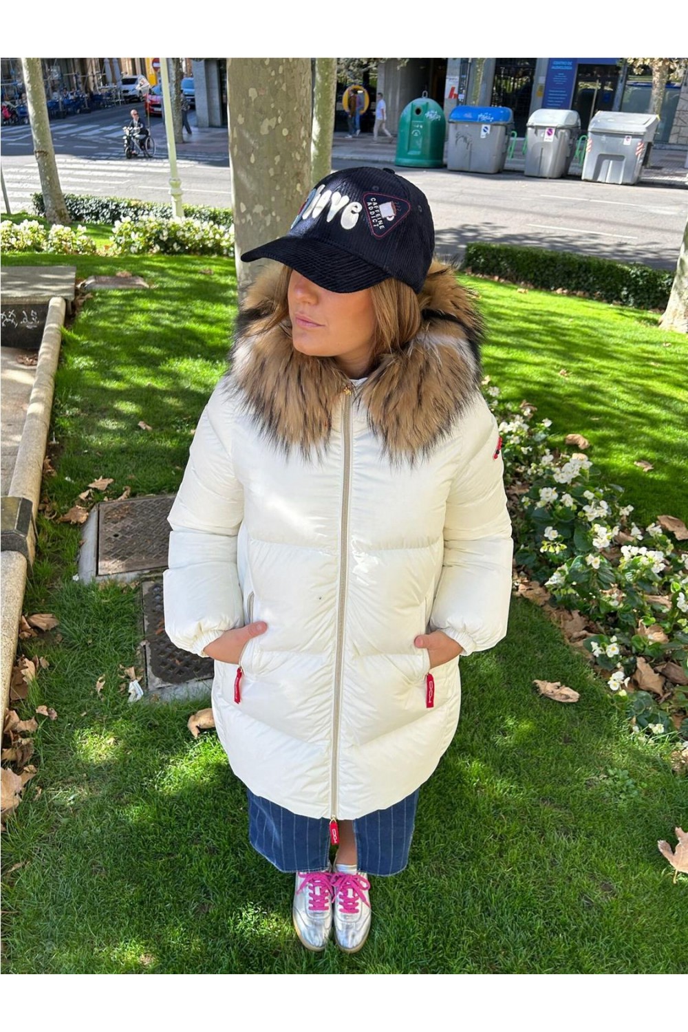 Plumas largo medio de mujer ALASKA Dichi pelo racoon desmontable blanco kaki ALASKA-4480