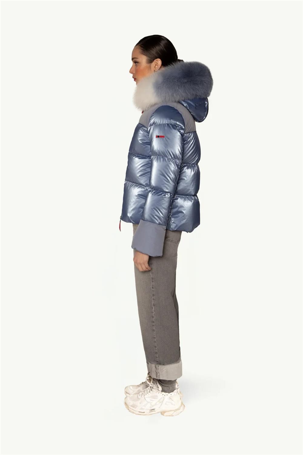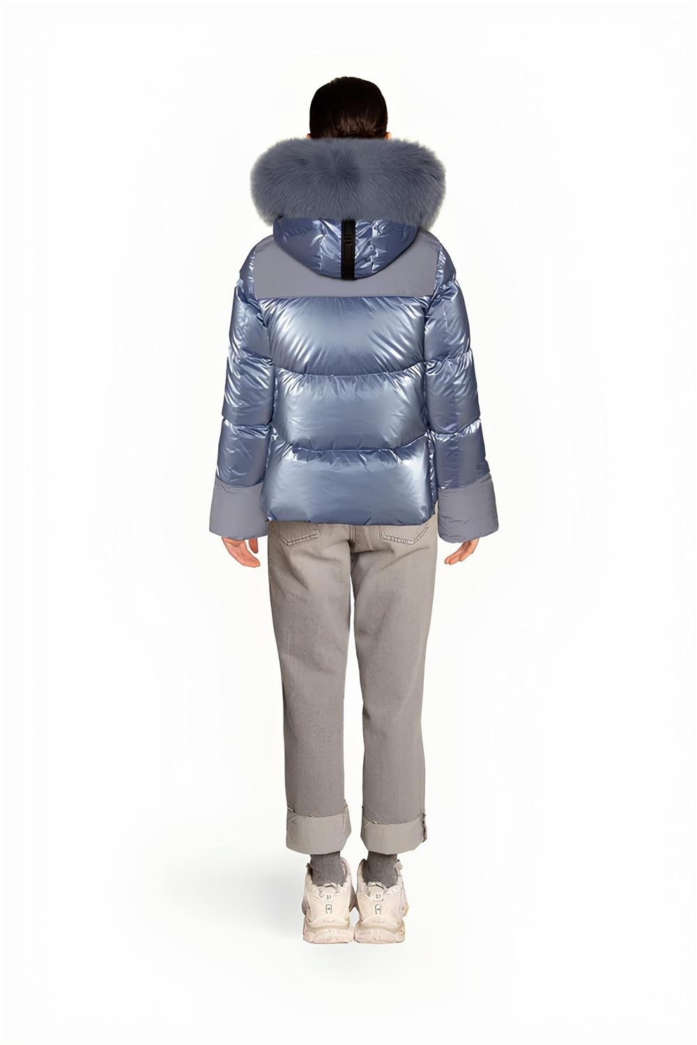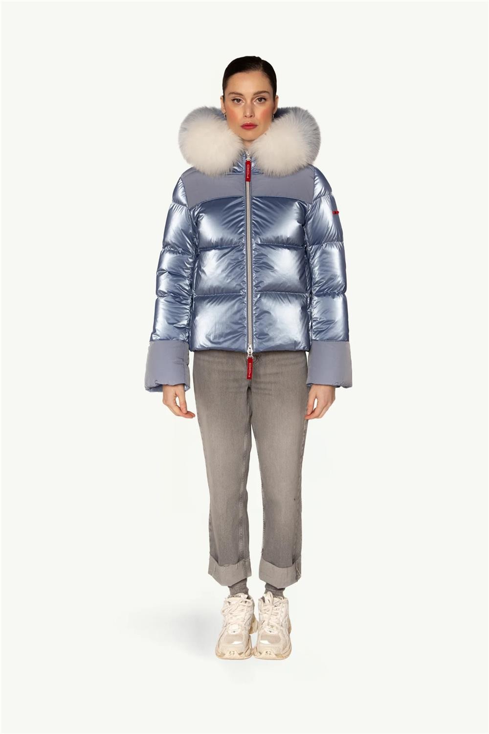 Plumas corto de mujer IVON Dichi capucha cuello desmontable azul cielo IVON-2475