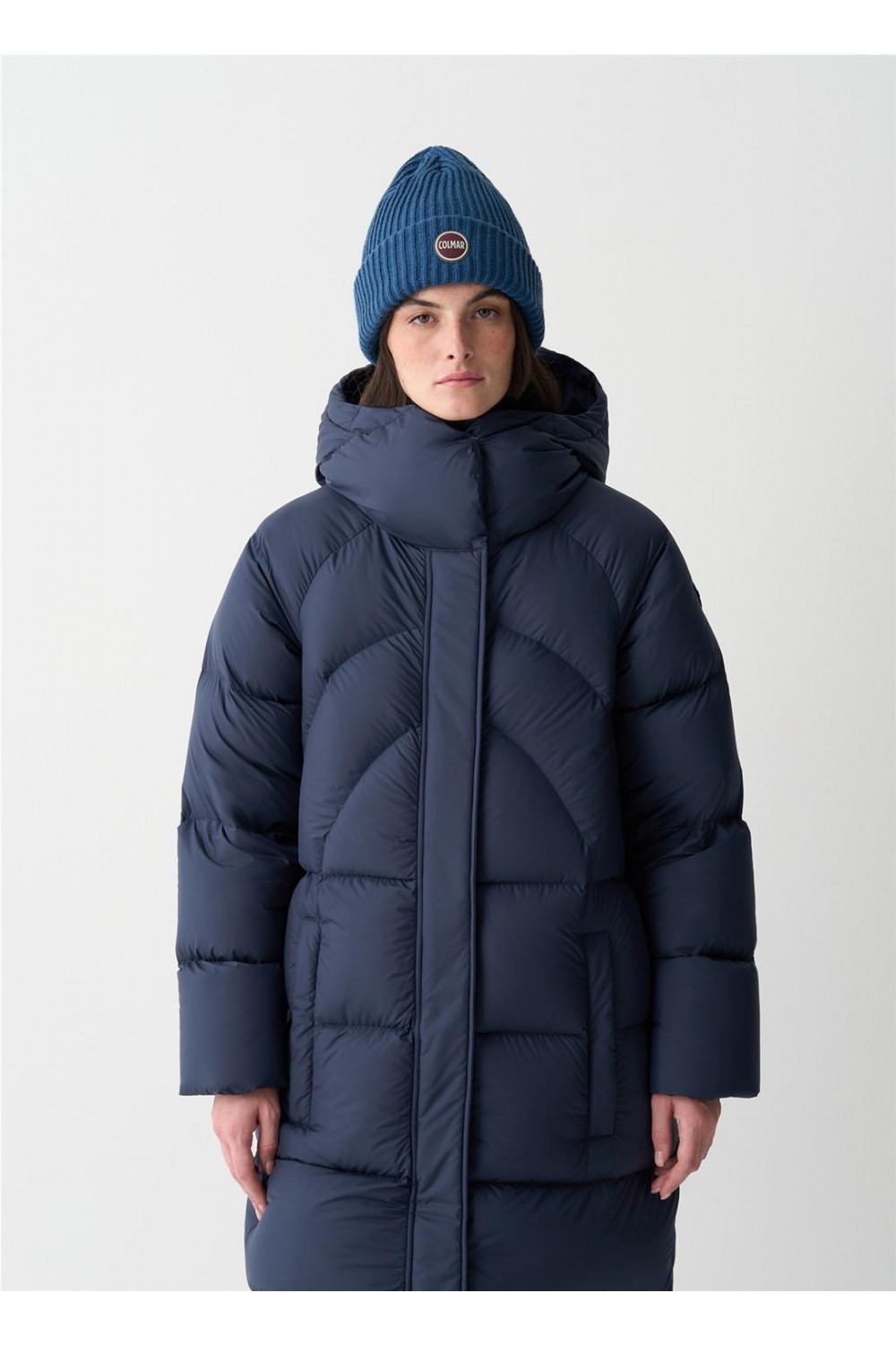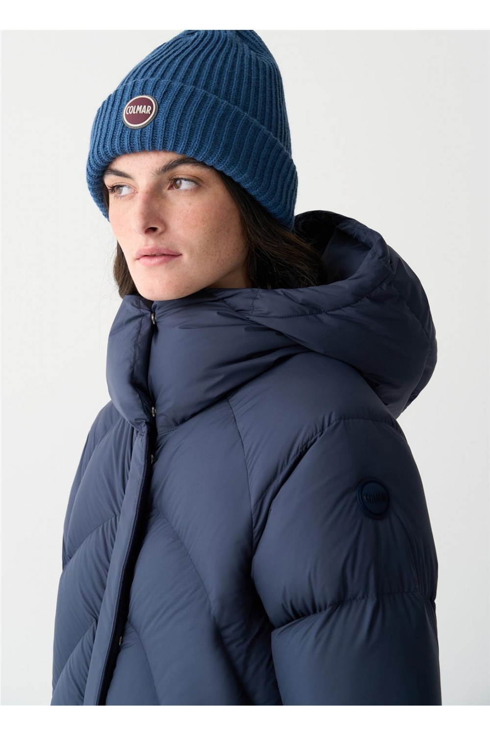 Plumas largo de mujer puffy Colmar mate oversize capucha azul marino 2245