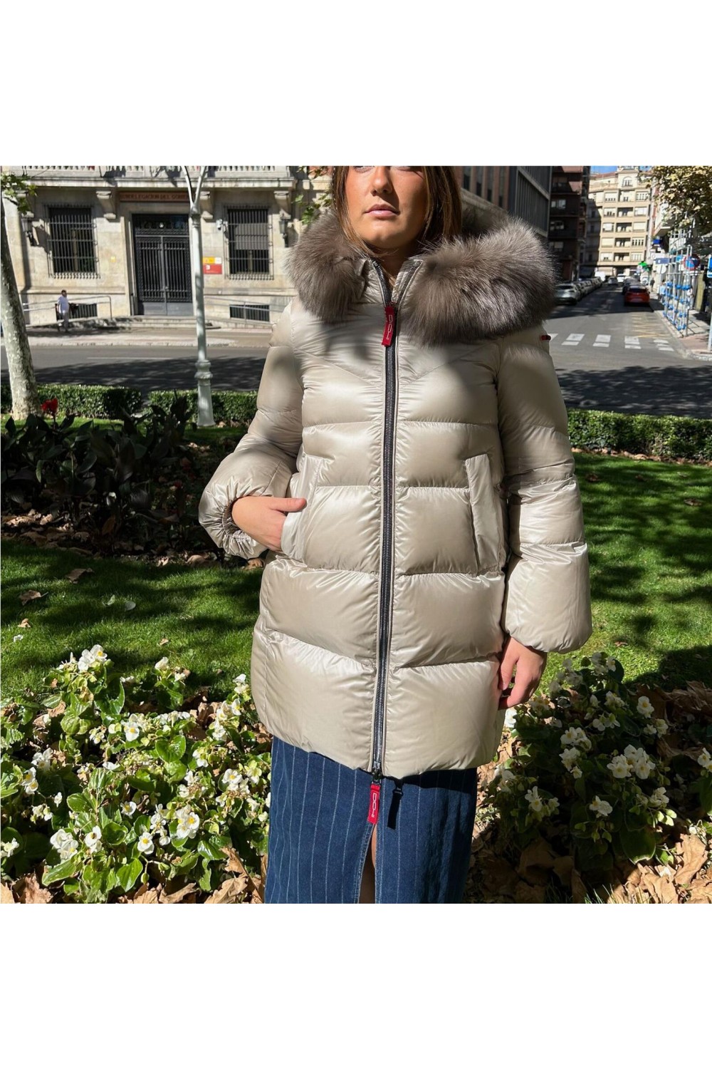 Plumas de mujer ALITA Dichi tres cuartos capucha beige verde ALITA-9000