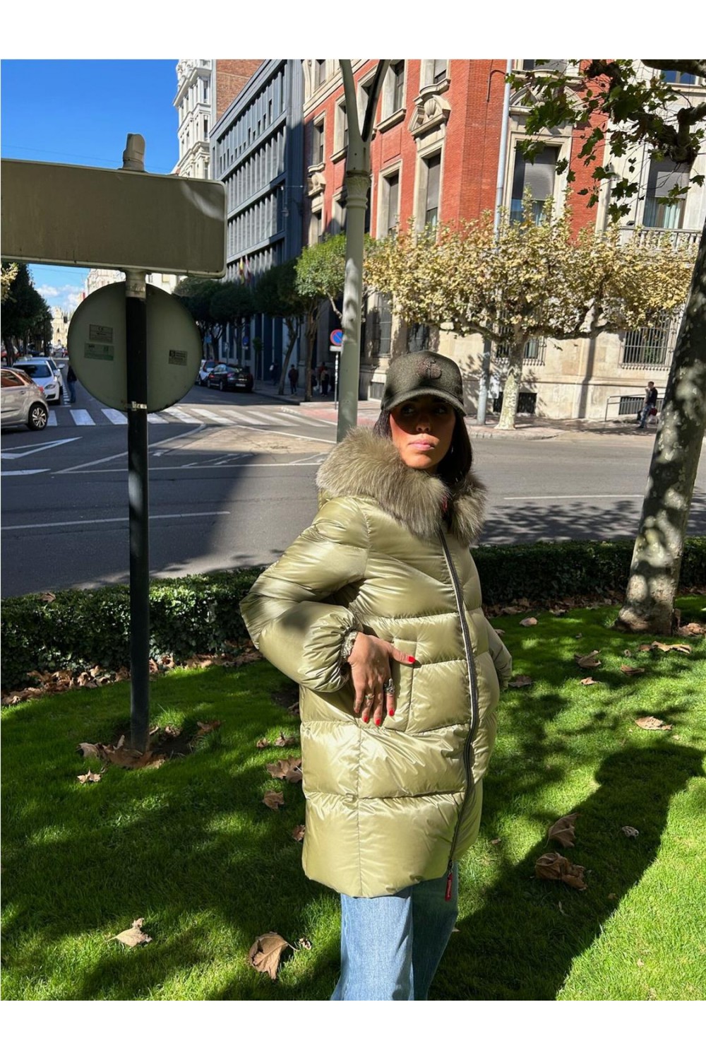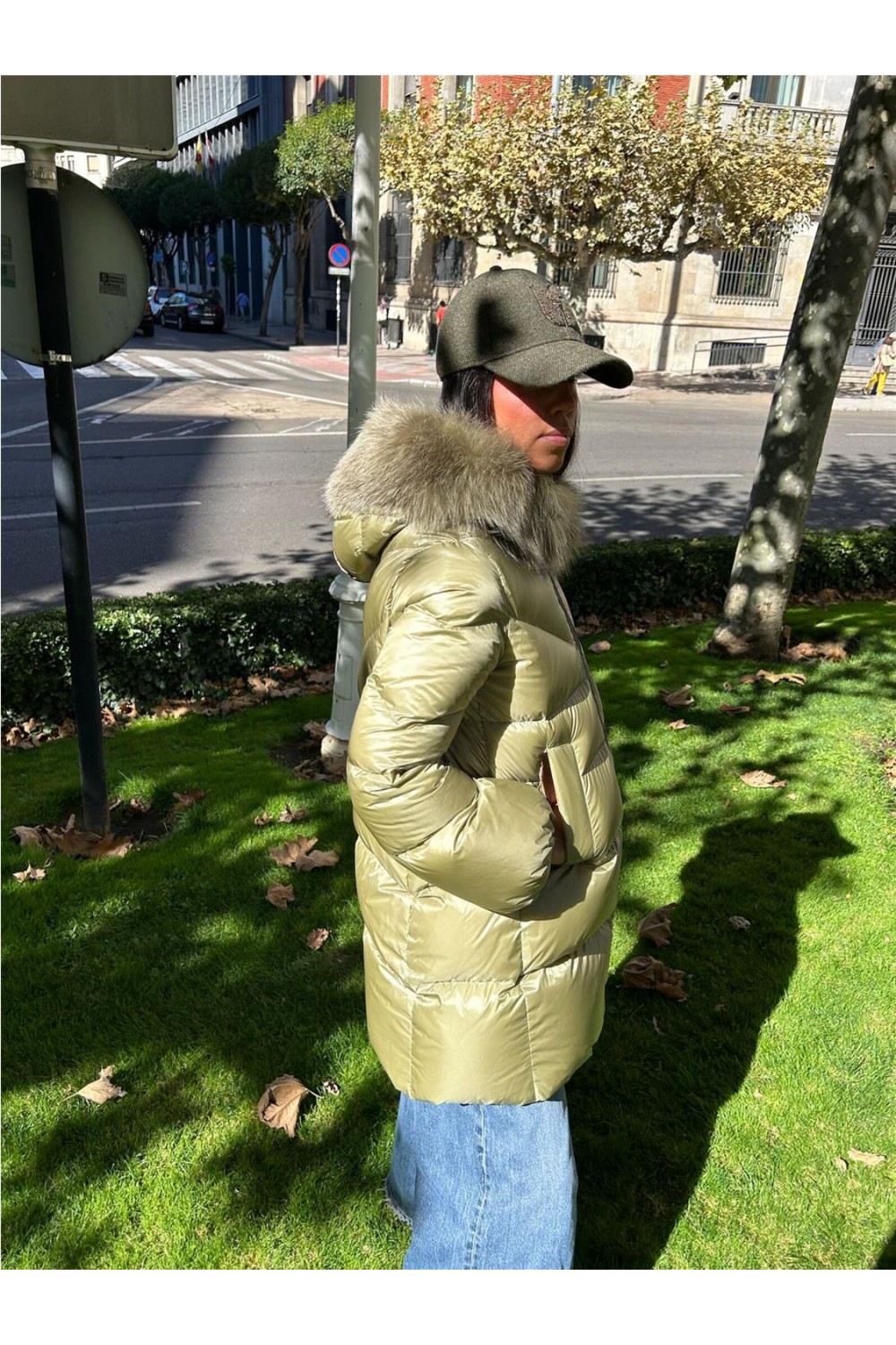 Plumas de mujer ALITA Dichi tres cuartos capucha beige verde ALITA-9000
