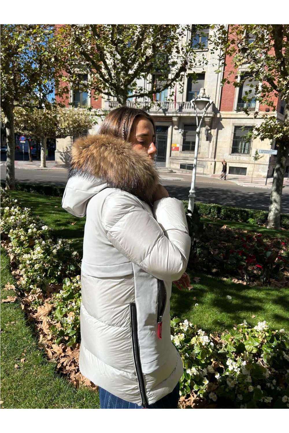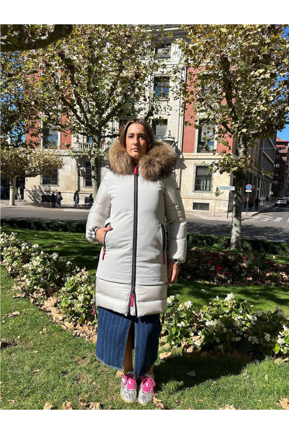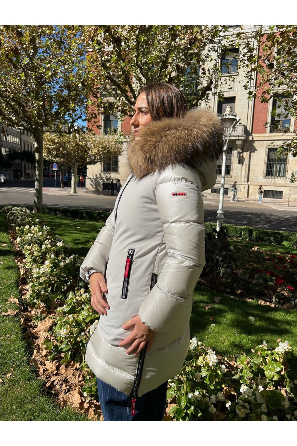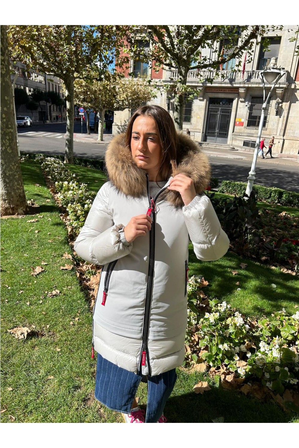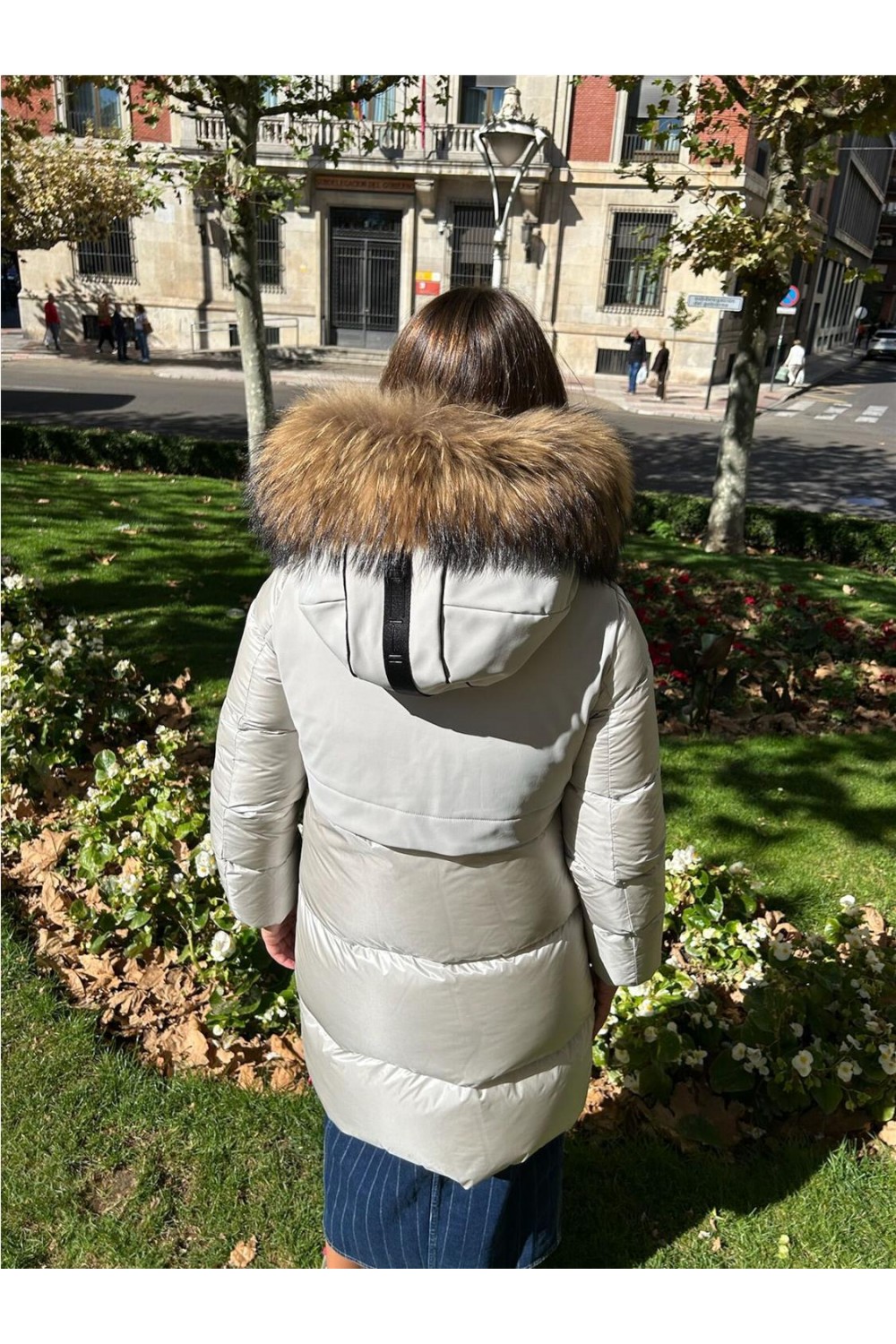Plumas largo tres cuartos de mujer GALENA Dichi capucha pelo racoon beige gris GALENA-5900