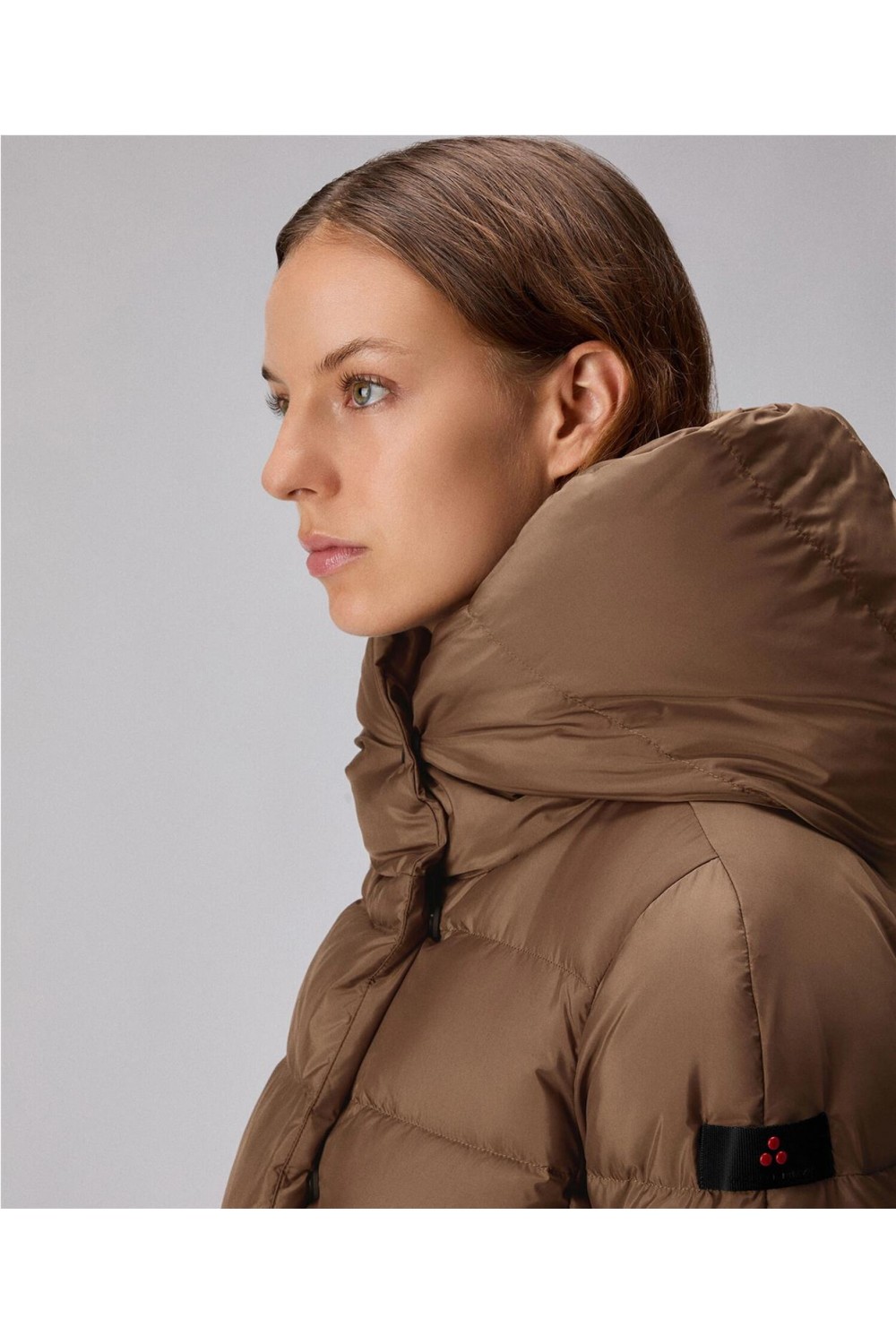 Plumas corto de mujer TUCANO MQN 02 Peuterey puffy capucha satén avellana TUCANO MQN 02