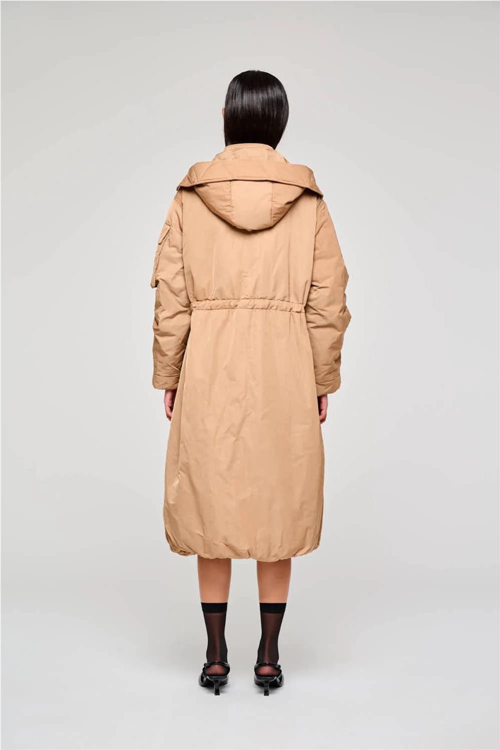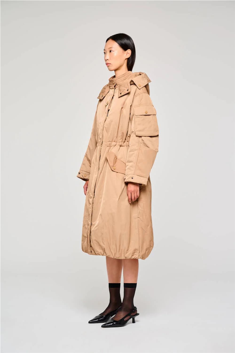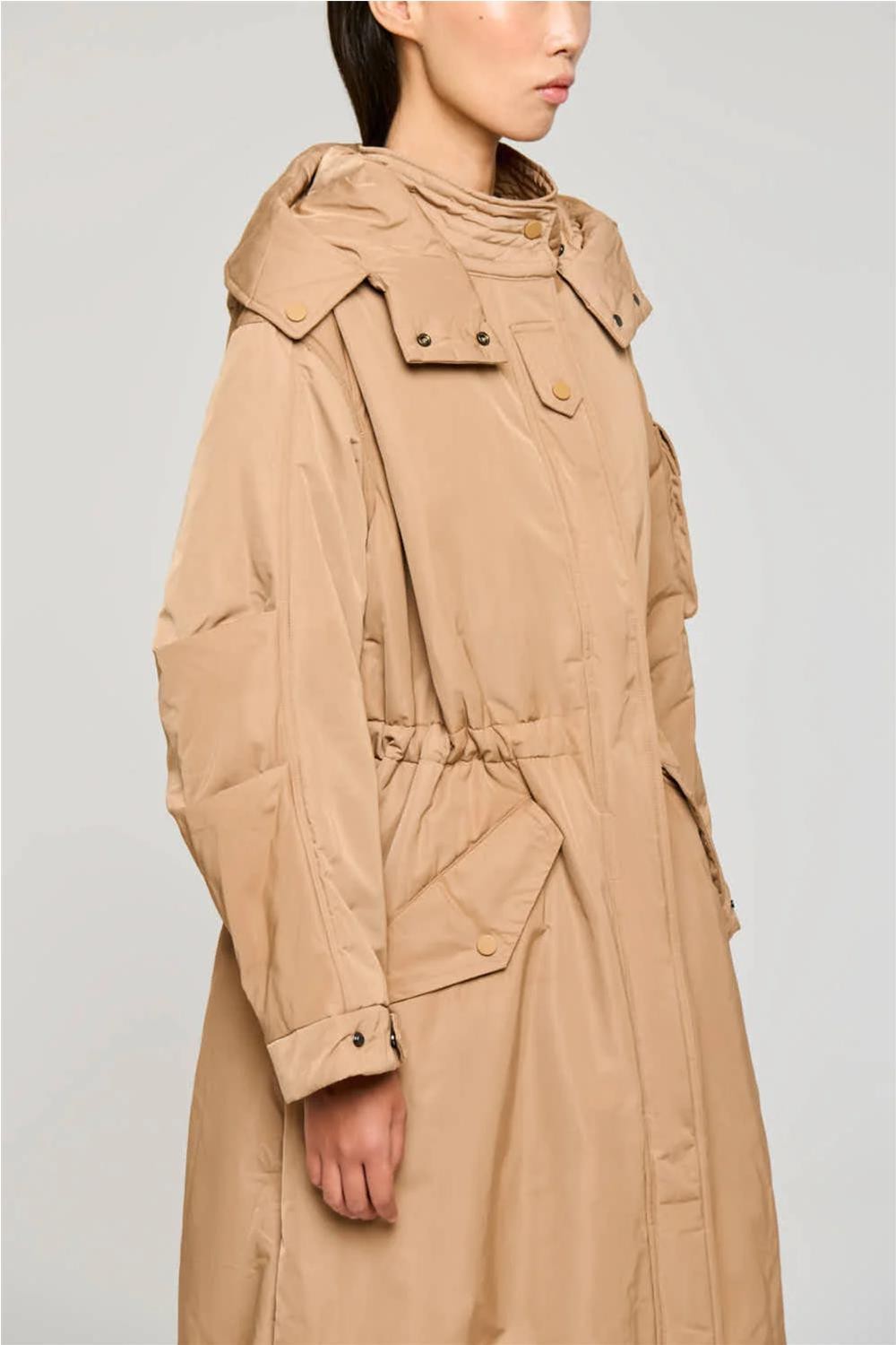 Plumas sintetico largo de mujer nylon repelente Off Wear oversize cordón cintura verde militar camel crema 9315