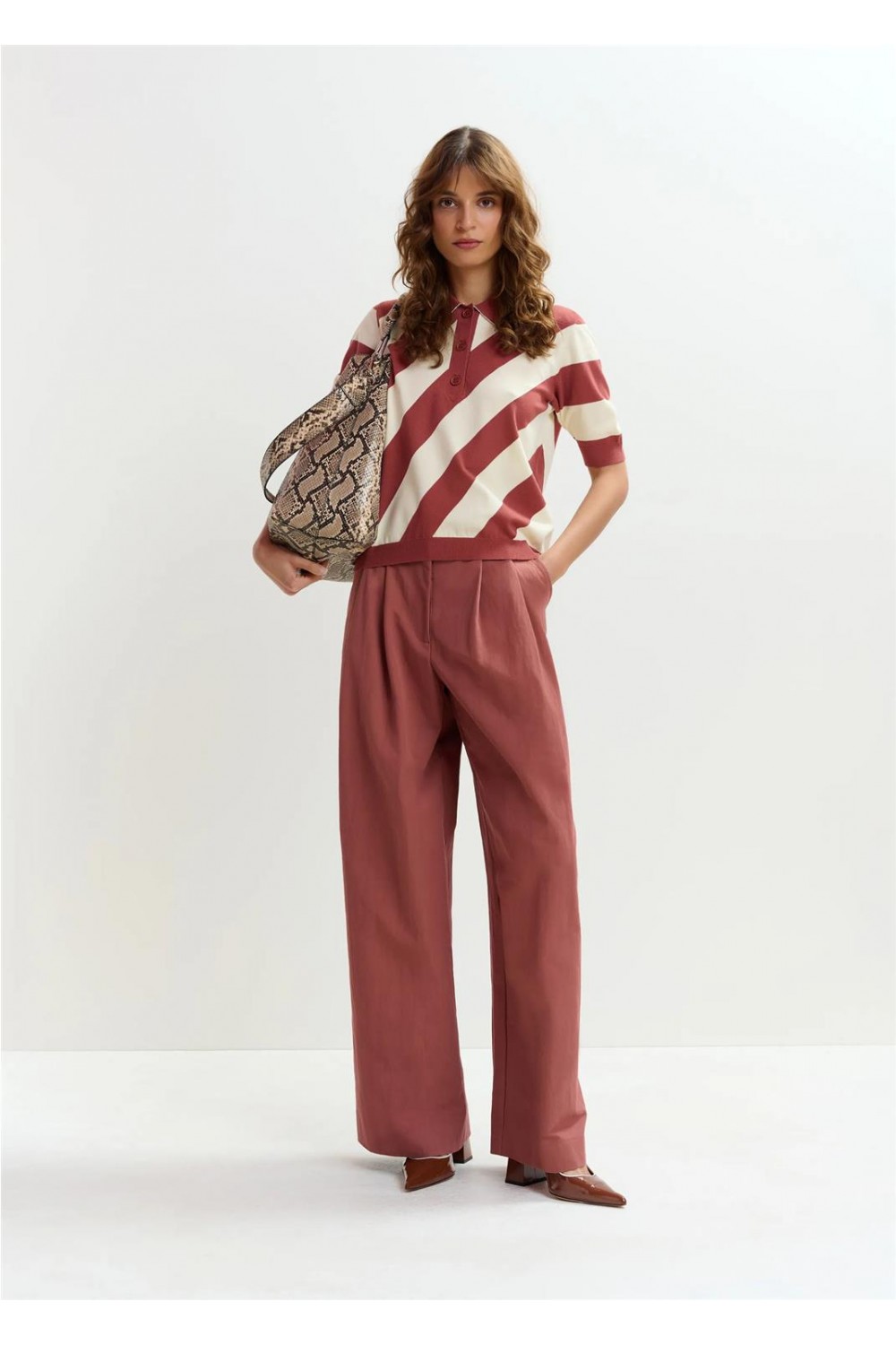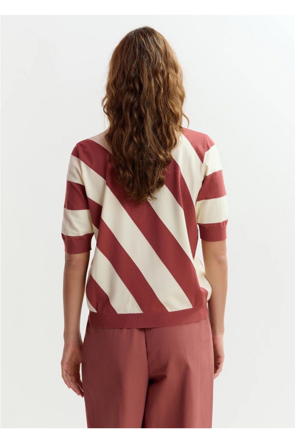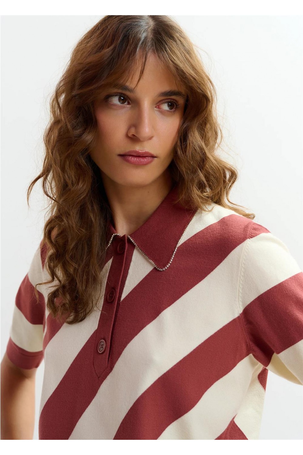 Polo de punto de mujer JORAM Essentiel strass holgado rayas terracota/blanco roto JORAM