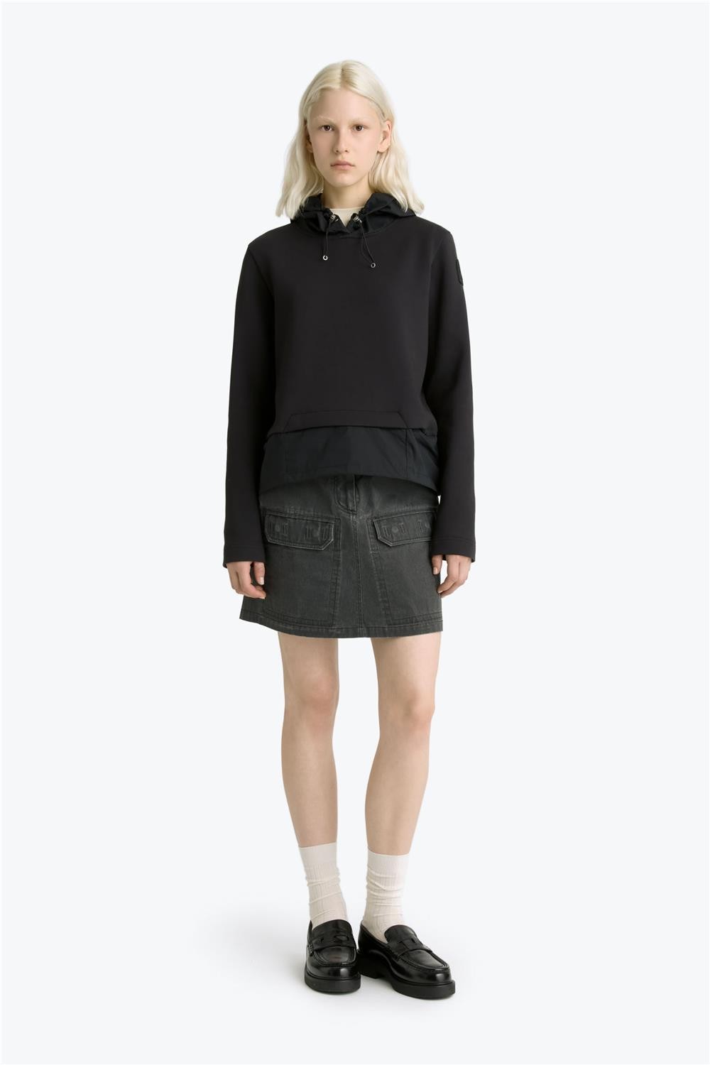 Sudadera de mujer EDITA Parajumpers capucha interlock elástico negro tiza musgosa EDITA