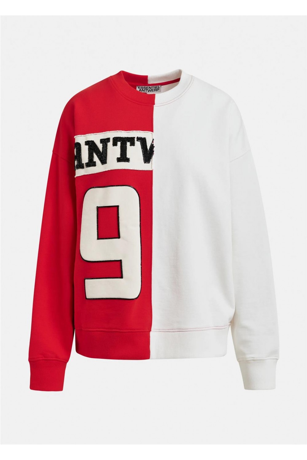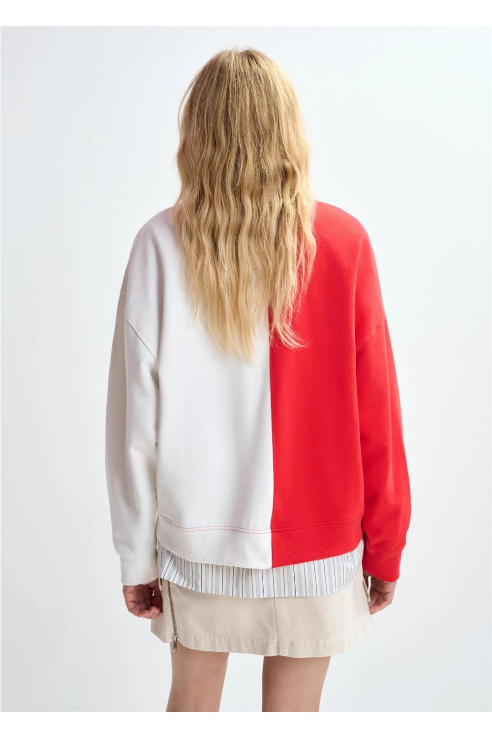 Sudadera de mujer JAME Essentiel diseño paneles partidos azul rojo JAME