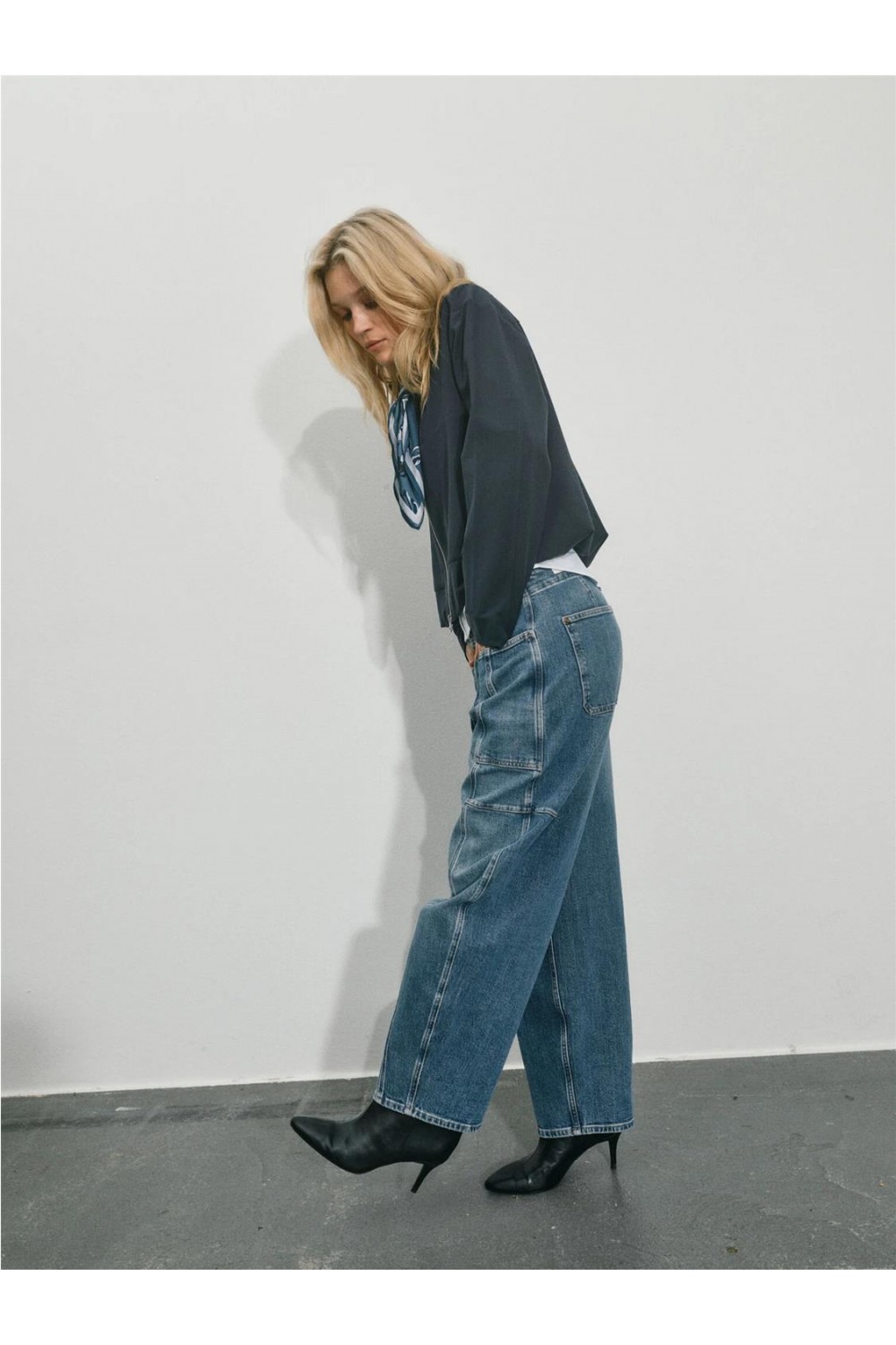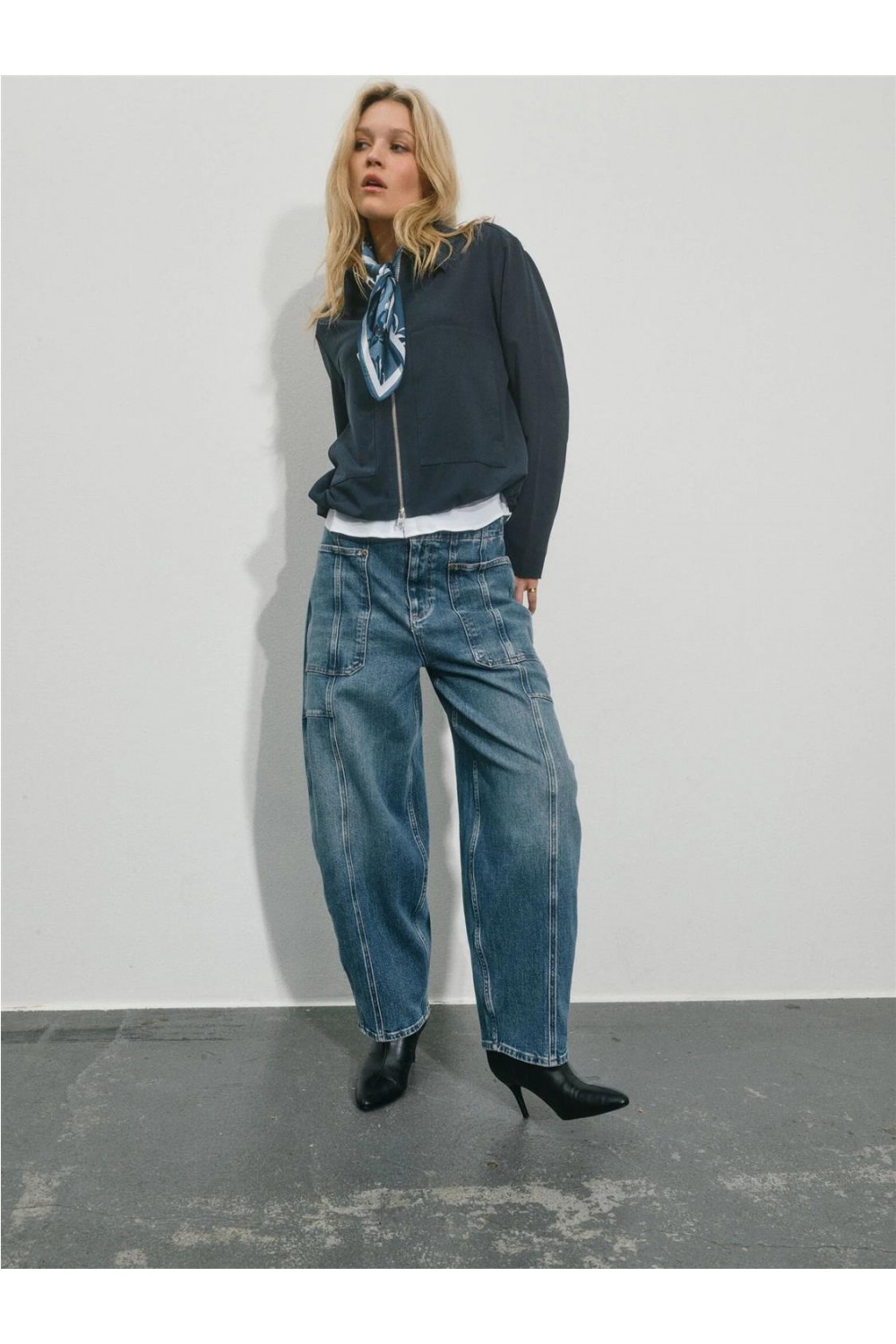 Pantalón vaquero de tiro baggy con corte slouchy y con nervios. Bolsos plastón. Composición: 99% Algodón Orgánico; 1% Elastano.