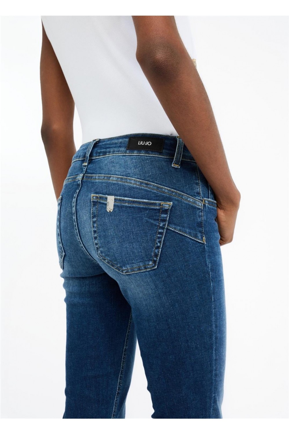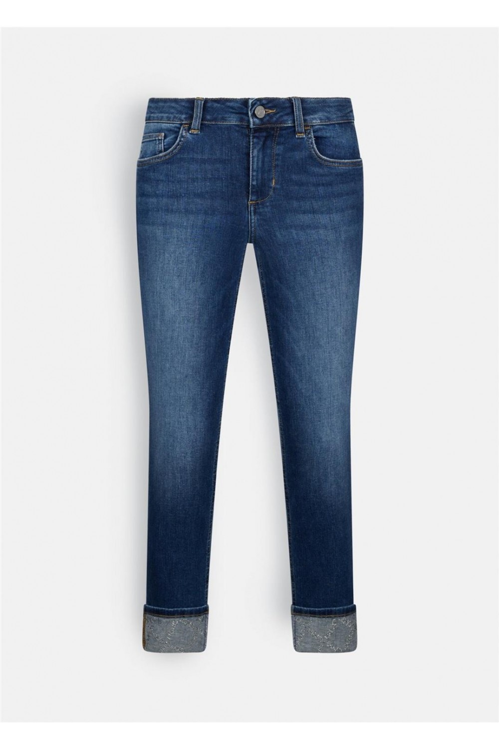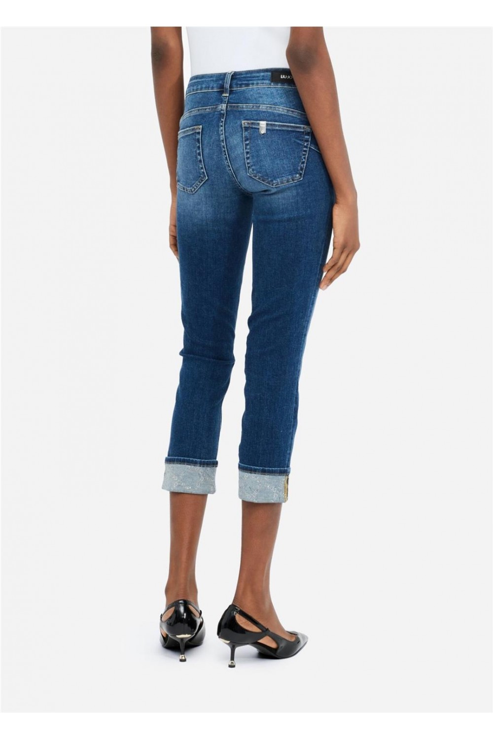 Pantalón vaquero de mujer pitillo Liu Jo tobillero elástico desgastado denim azul gris UF5006D4615