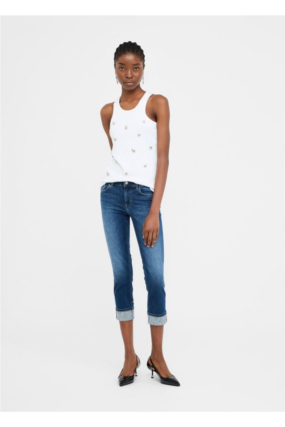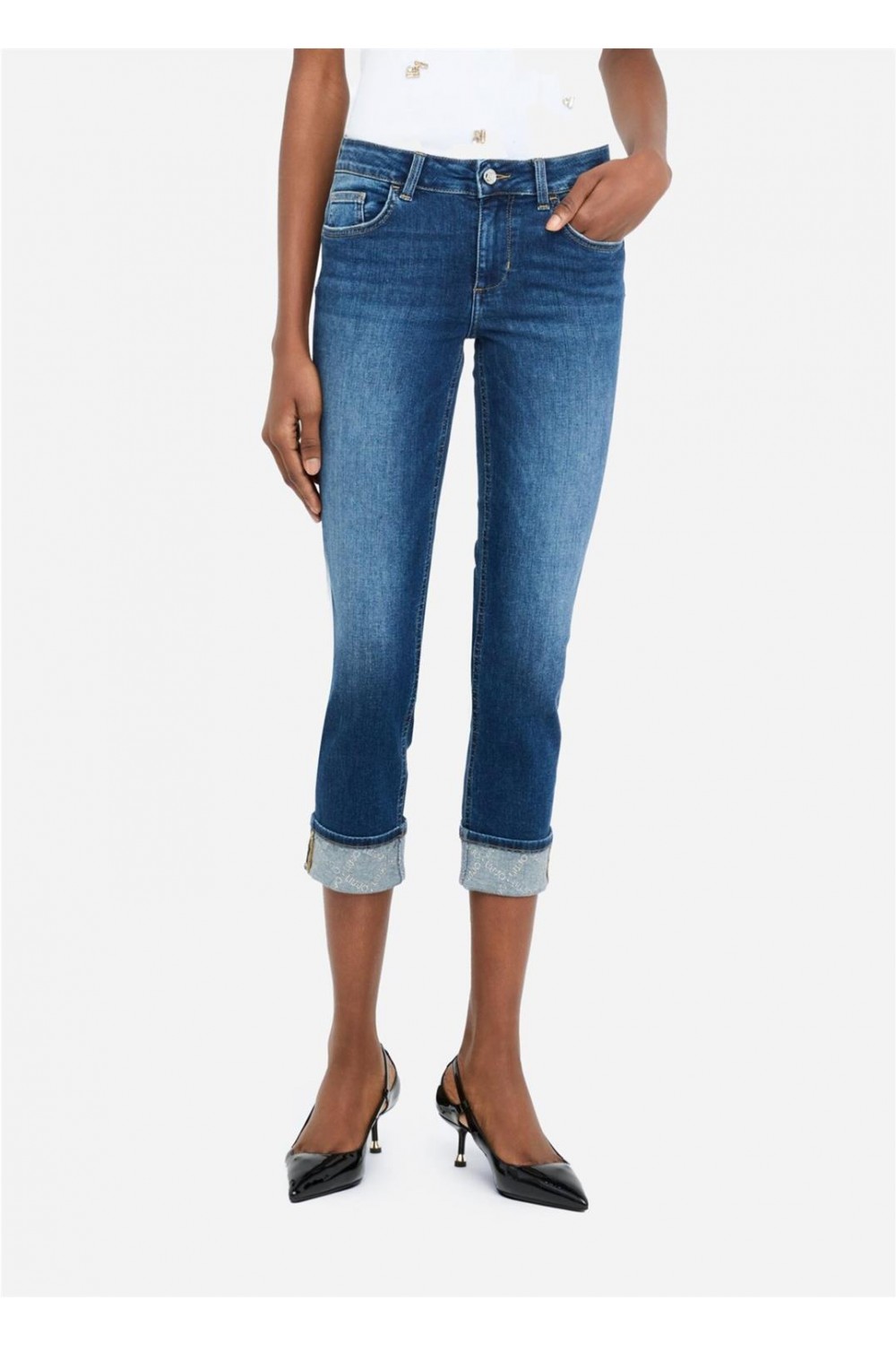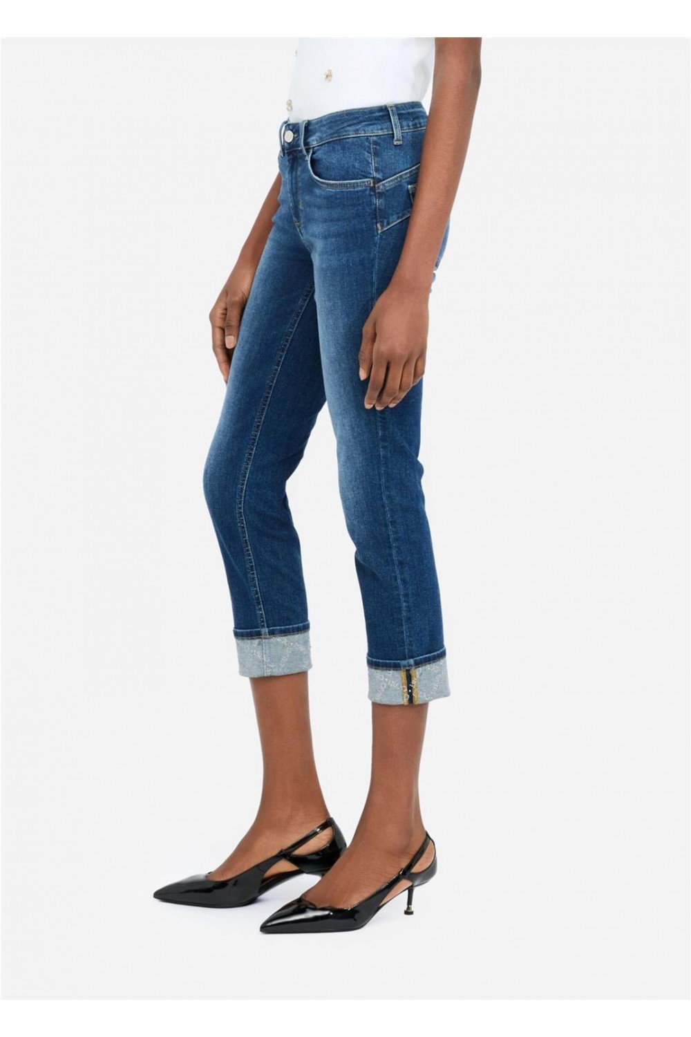 Pantalón vaquero de mujer pitillo Liu Jo tobillero elástico desgastado denim azul gris UF5006D4615