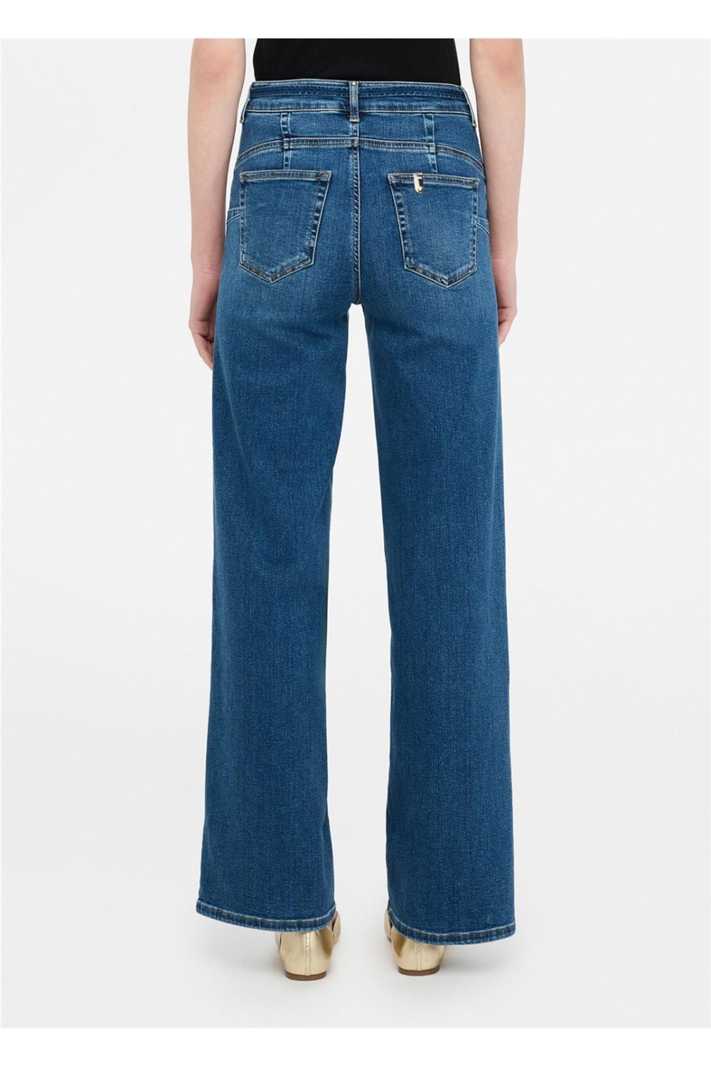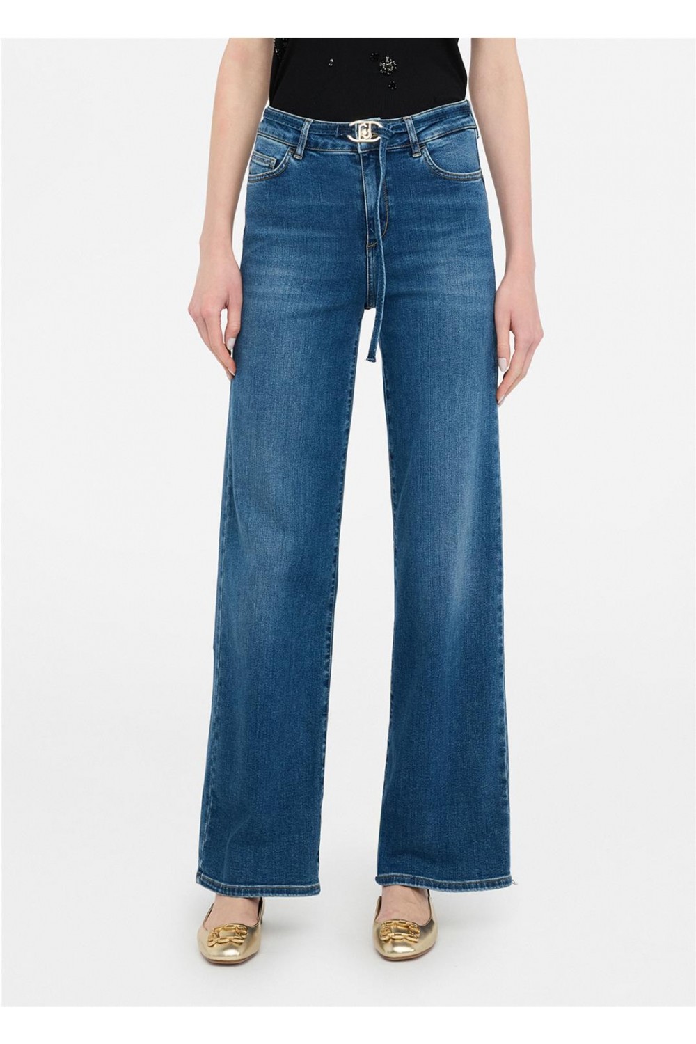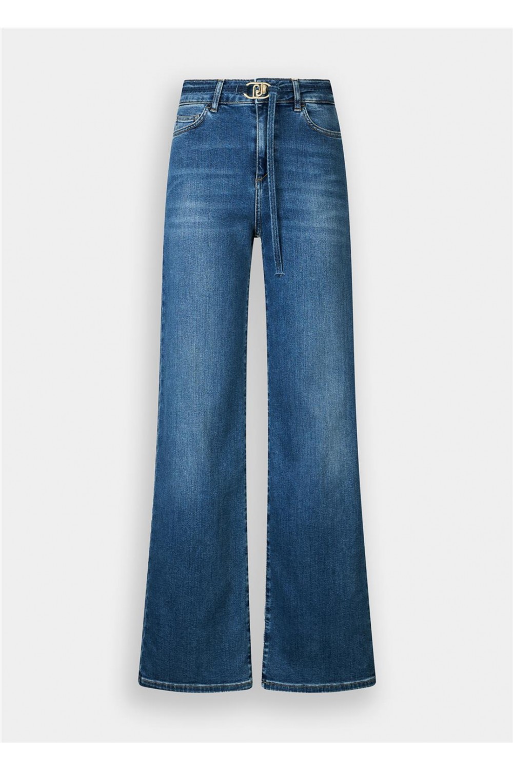 Pantalón vaquero de mujer con cinturón Liu Jo acampanado tobillero elástico denim azul negro UF5101D0264