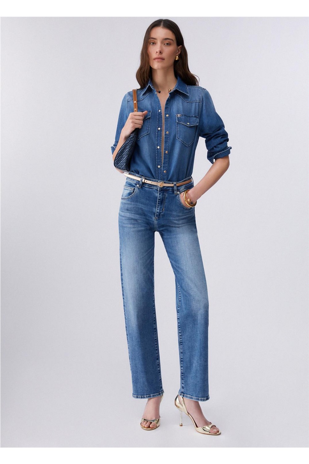 Pantalón vaquero de mujer Stonewash Liu Jo atemporal clásica desenfadado azul denim UA6184D0314