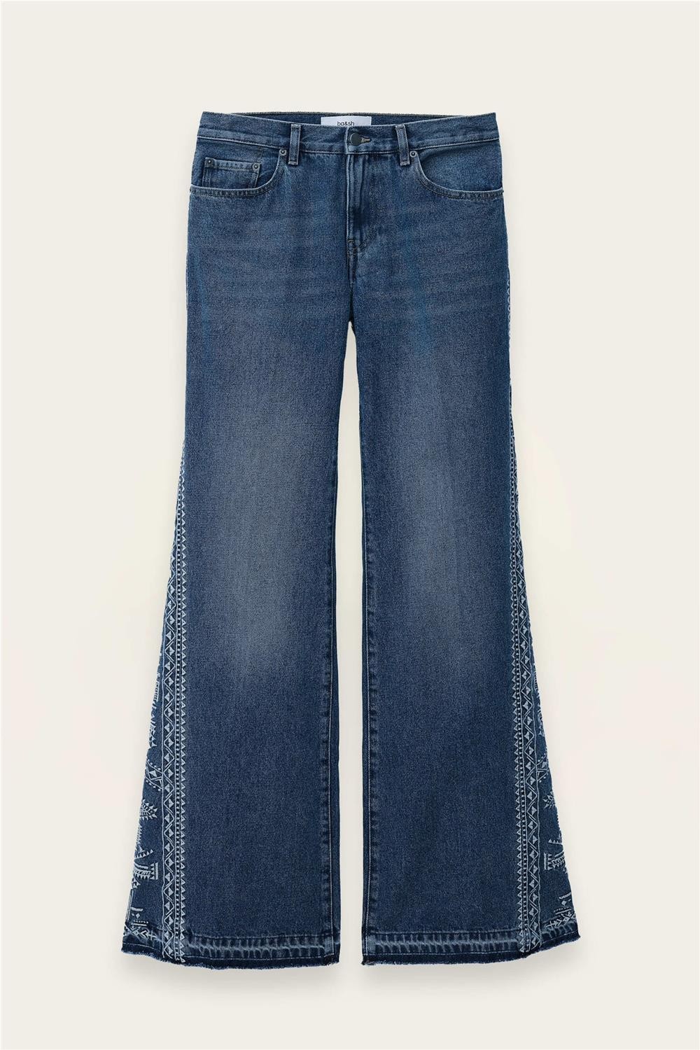 Pantalón vaquero de mujer VIVY bash acampanado bordados parches azul 1E26VIVY