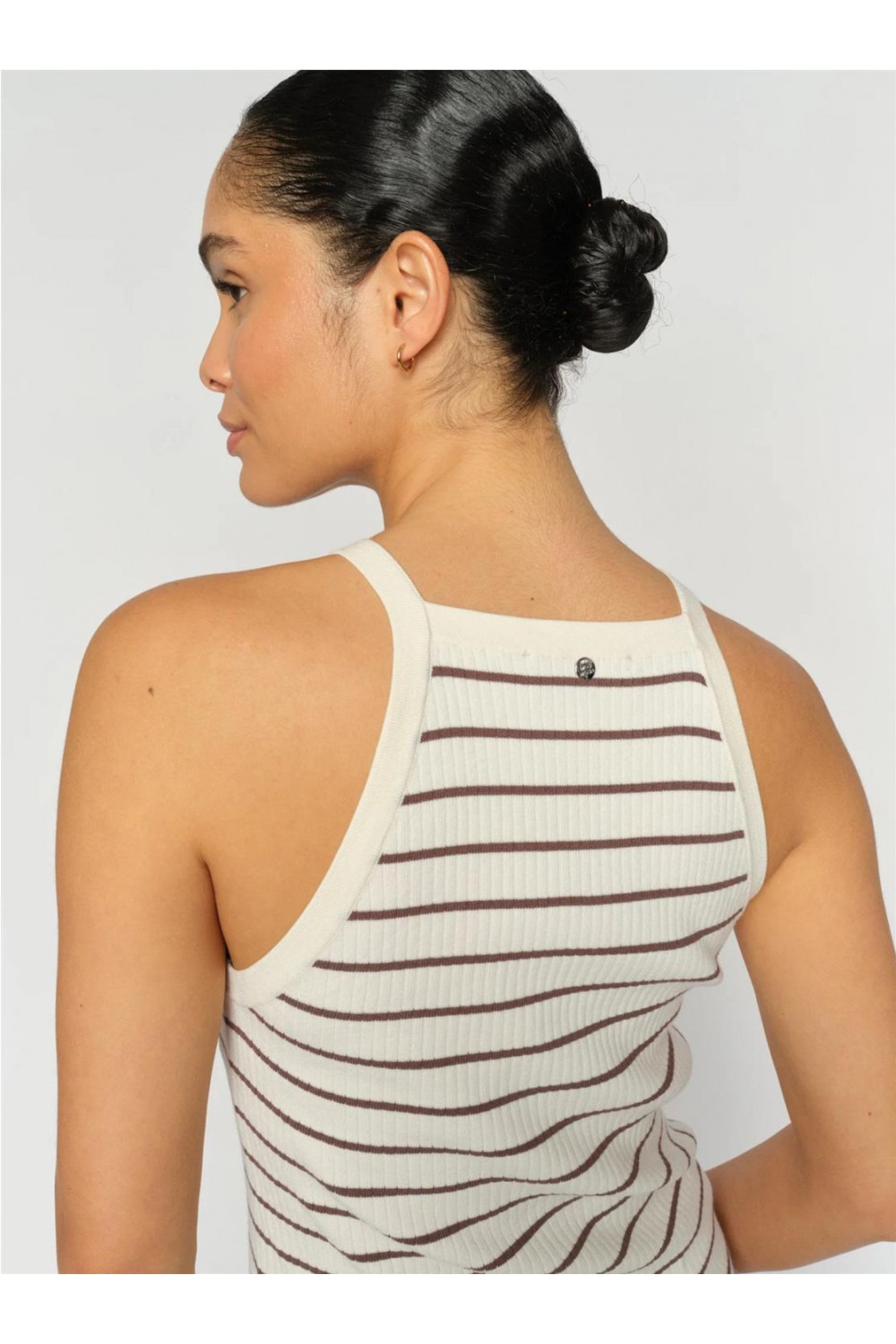 Top de mujer MMImanja Caliz MOS MOSH punto rayas seda marrón café naranja picante 176720