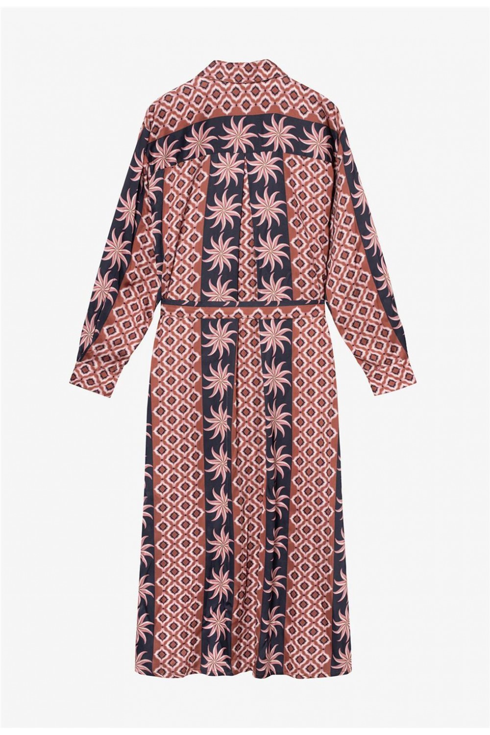 Vestido camisero largo de mujer NISSA Stella Forest fluido inspiración setentera rosa H25RO038