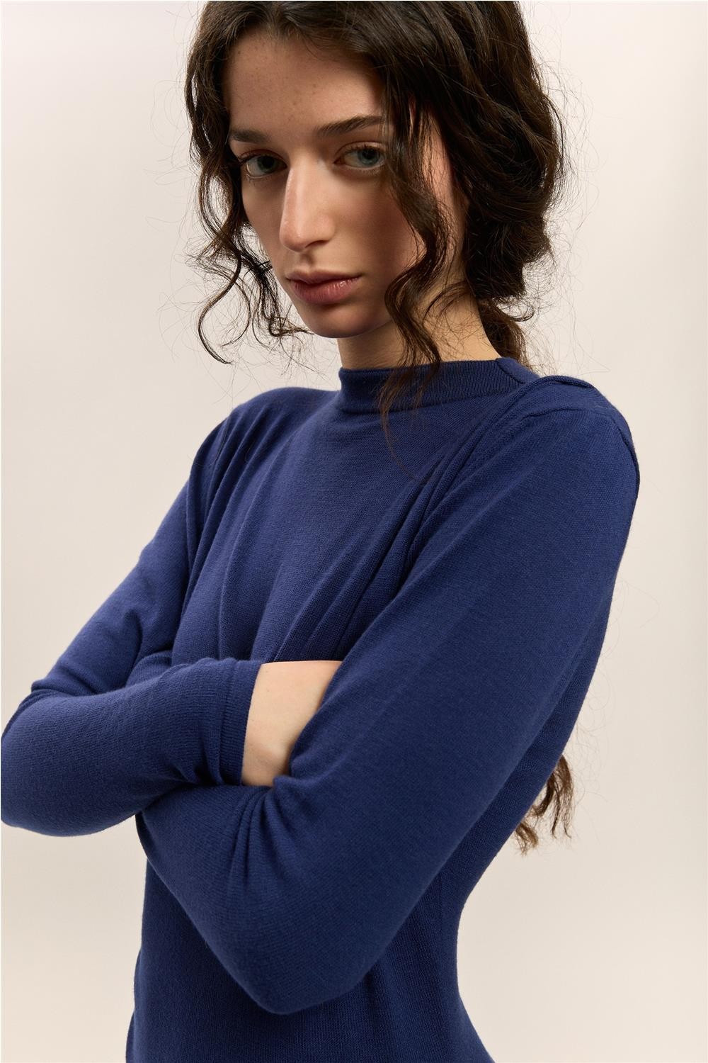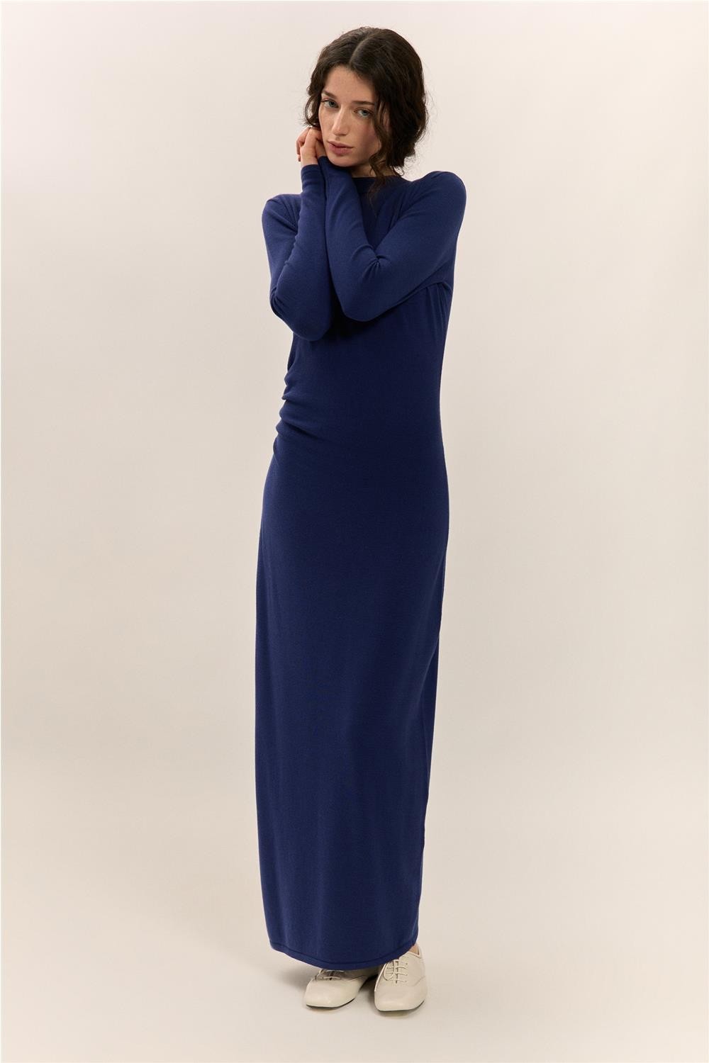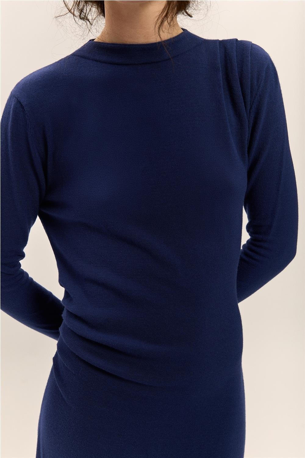 Vestido de mujer de punto drapeado Montoto asimétrico mangas largas azul tinta 58M4113
