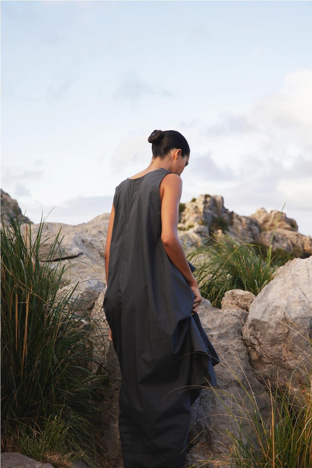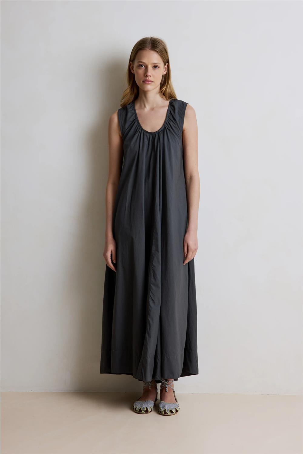Vestido largo de mujer Emmanuelle Hod Paris parchute algodón puro carbón EMMANUELLE