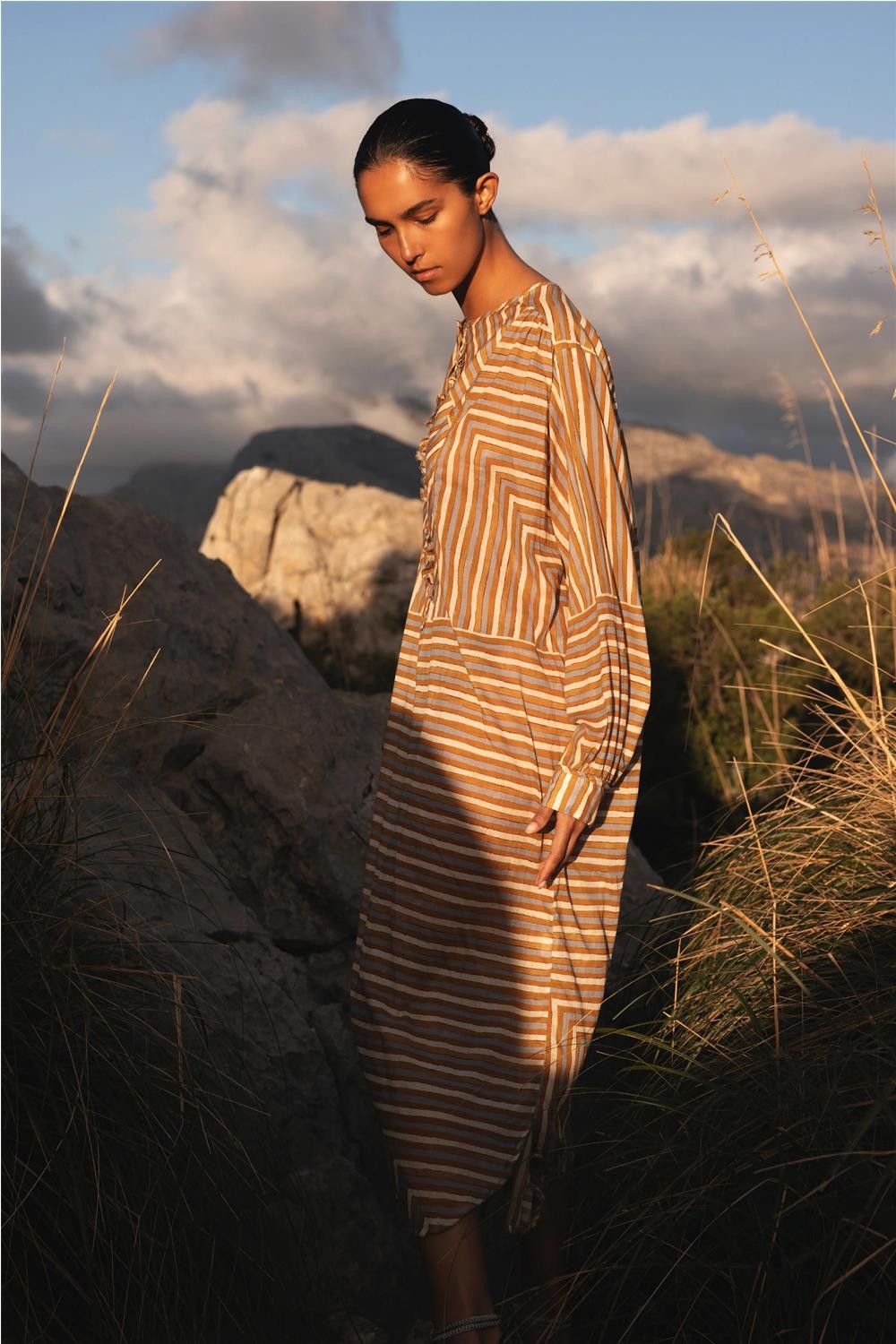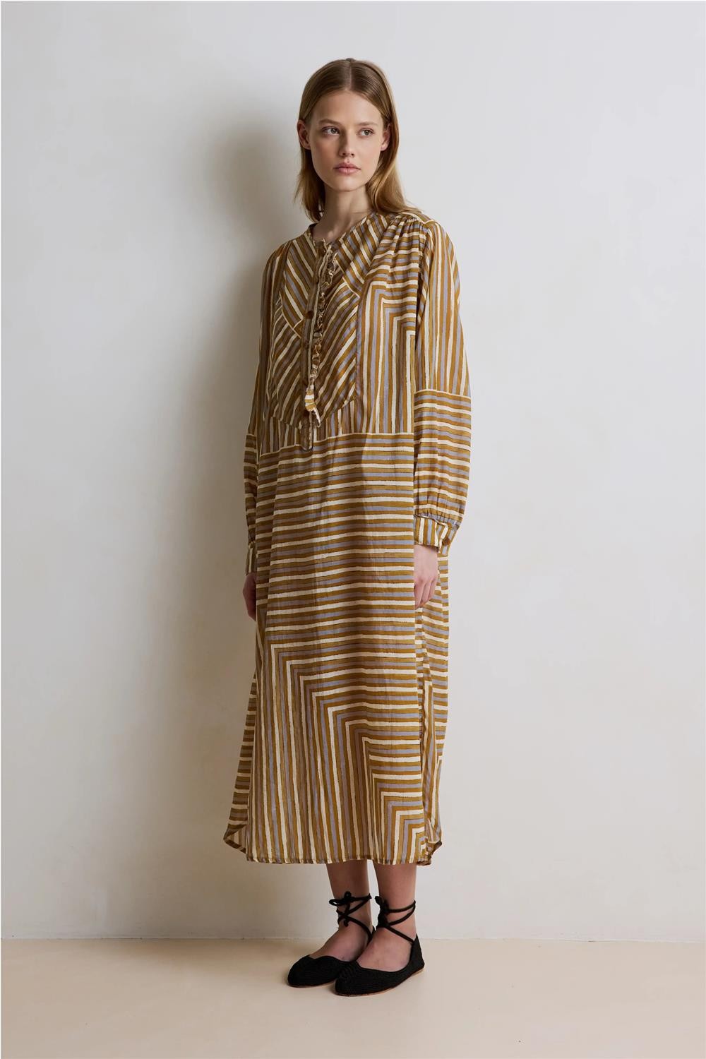 Vestido largo de mujer Sally Hod Paris manga larga entretiempo caramelo SALLY