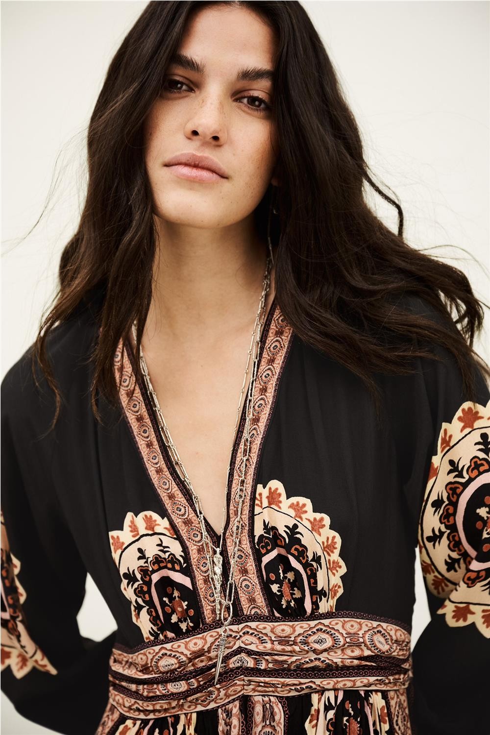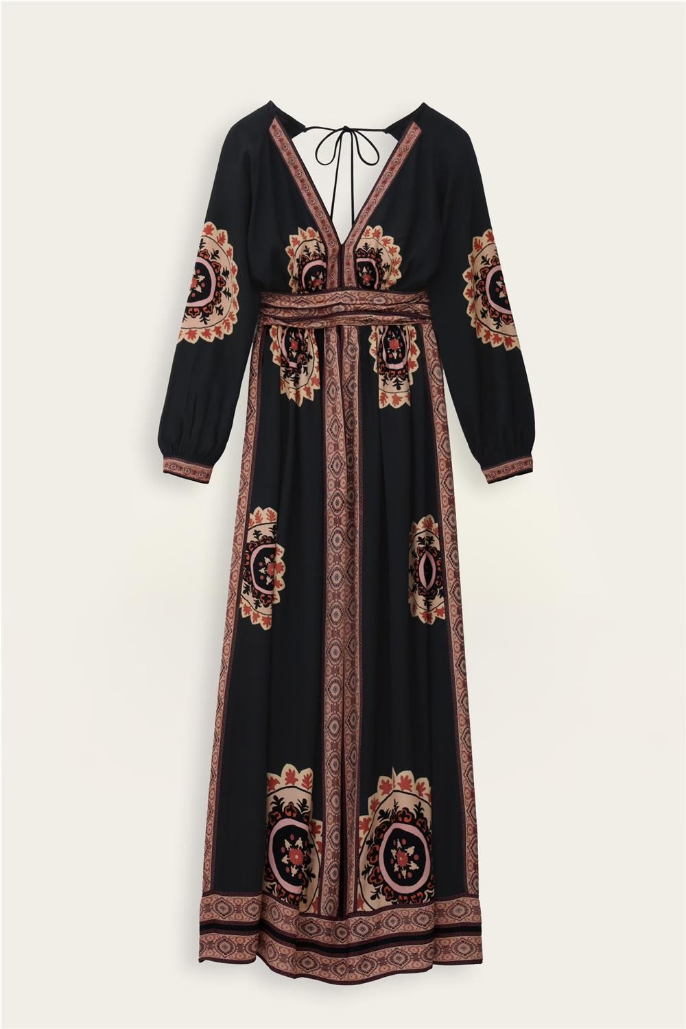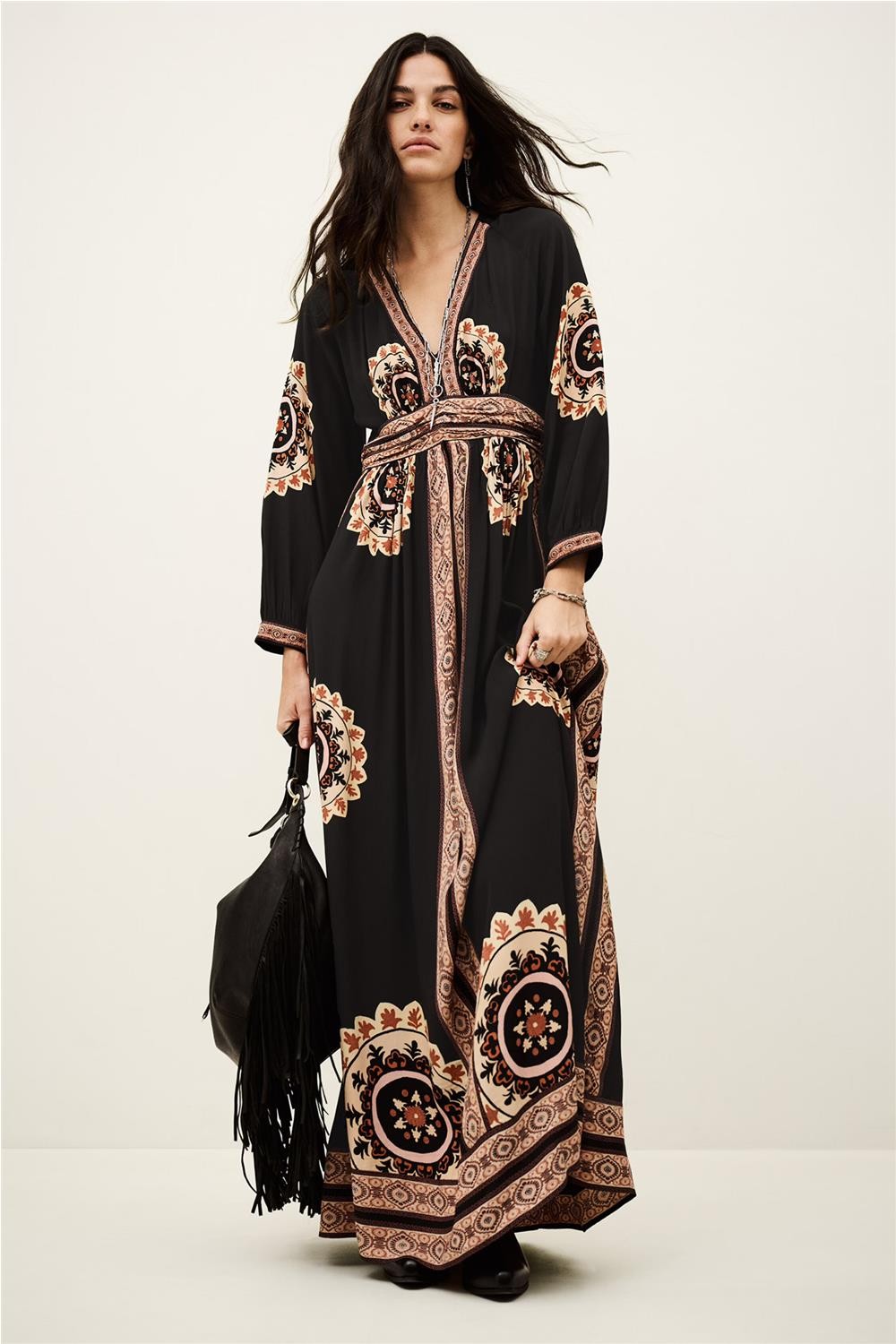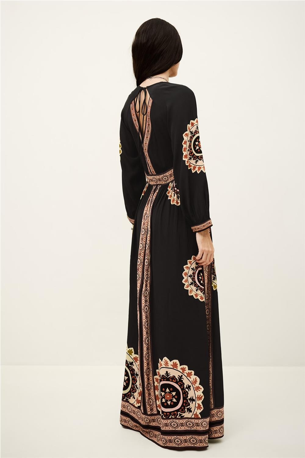 Vestido largo de mujer VERA bash viscosa maxi cenefas carbón 1E26VERA