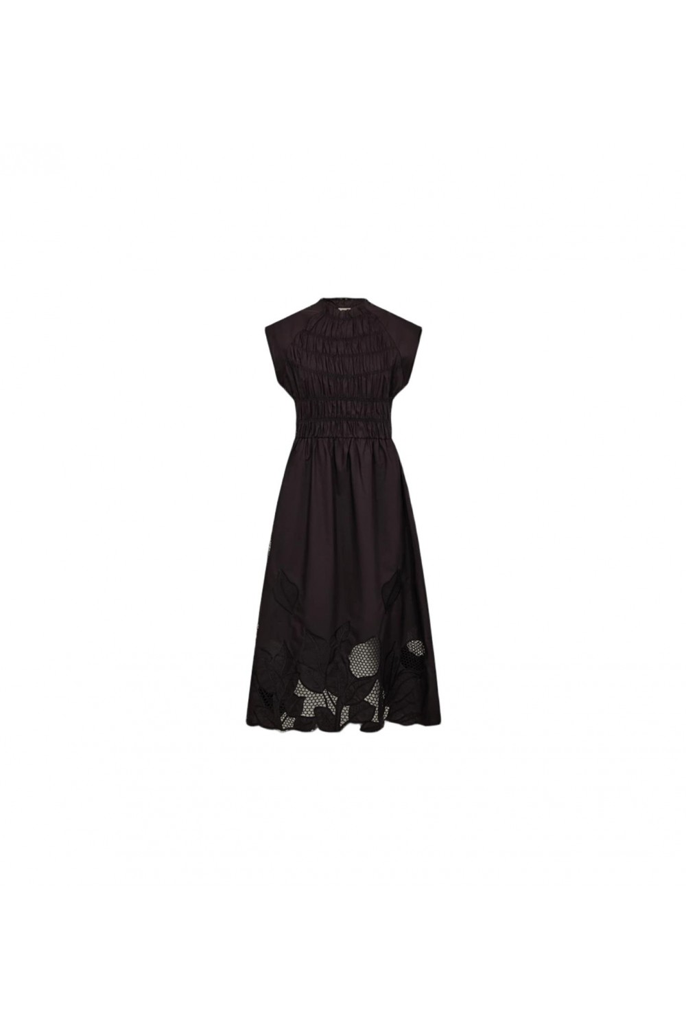 Vestido largo medio de mujer MMAria Mos Mosh cintura elástica bordados negro naranja picante 177790