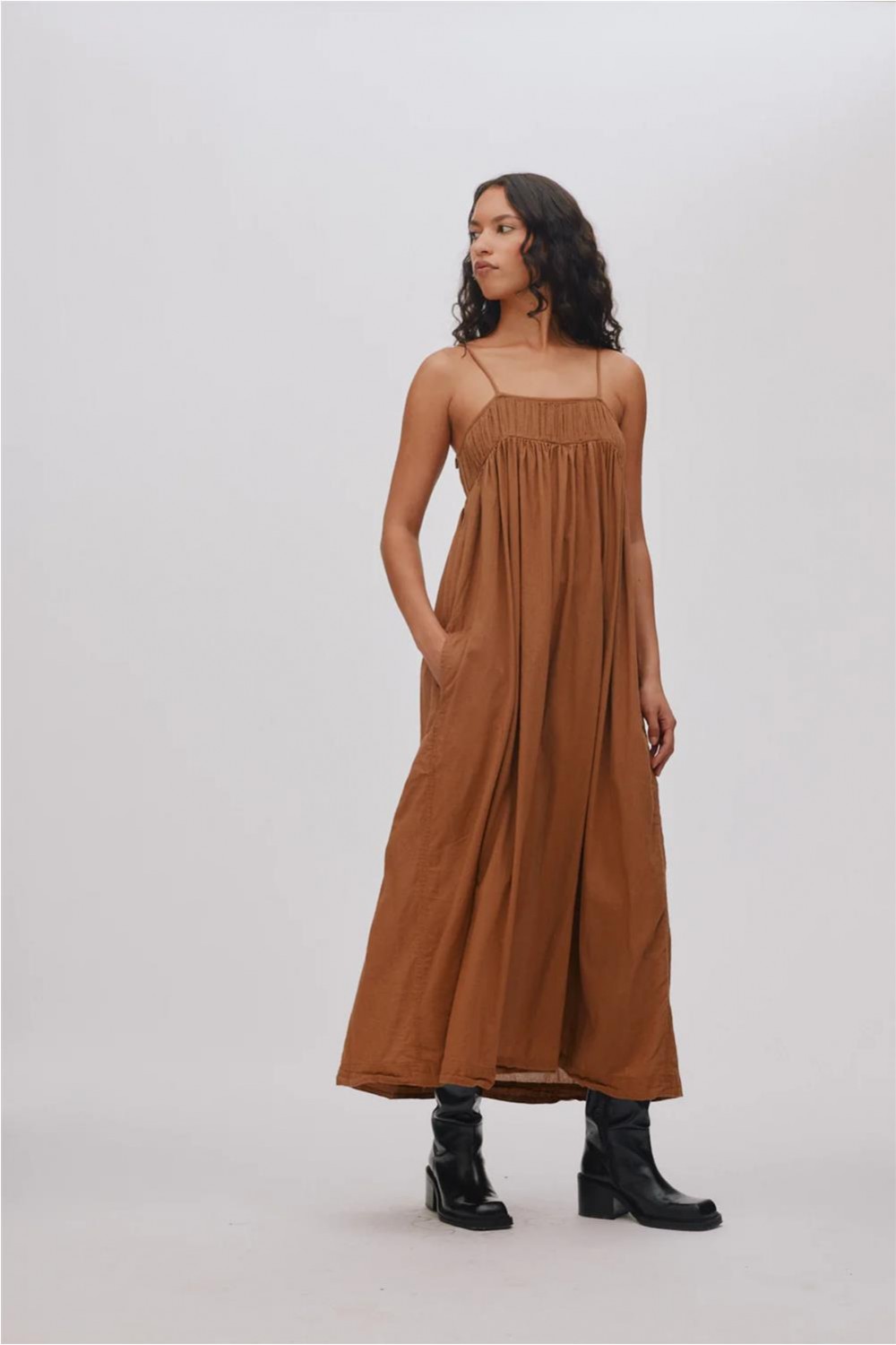 Vestido largo de mujer Dorrit Rabens Saloner tirantes ajustables ligero castaña clara Dorrit