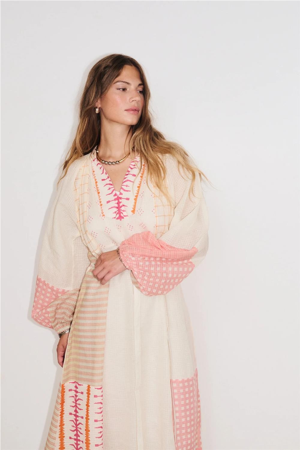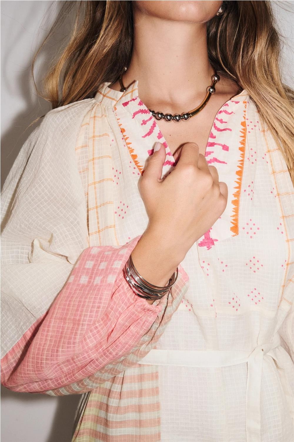 Vestido largo de mujer MAYA Stella Forest patchwork jacquard Mao crudo E26RO039