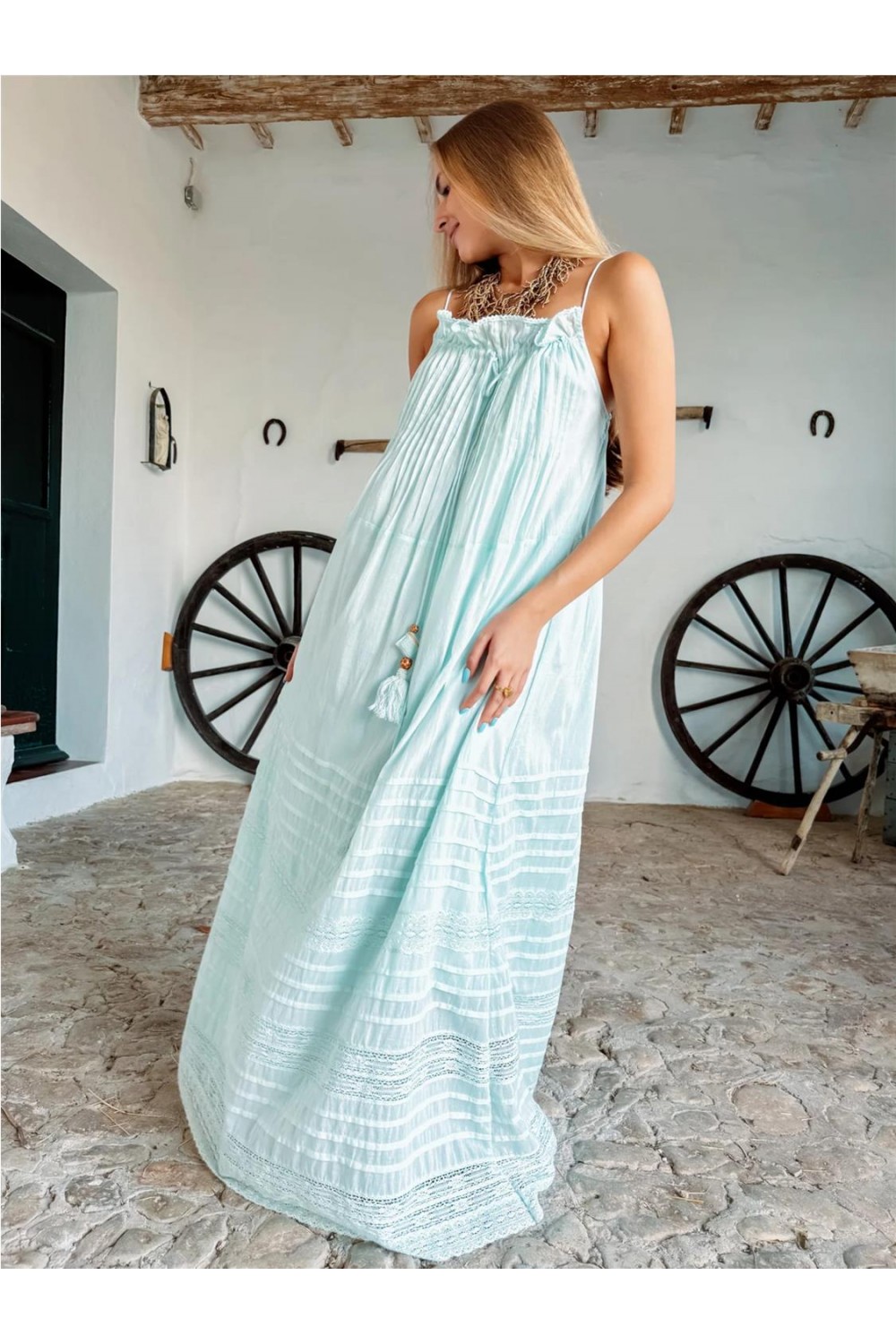 Este vestido largo destaca por su corte fluido y ligero, confeccionado en voile 100% algodón orgánico que ofrece frescura y suavidad. Presenta un diseño de tirantes finos con una caída fluida de estilo bohemio y relajado, ideal para días cálidos. Incluye detalles de pasamanería artesanal aplicados en las terminaciones y prácticos bolsillos laterales funcionales. Es una prenda atemporal y sostenible, diseñada para aportar comodidad y naturalidad. Composición: 100% Algodón orgánico.