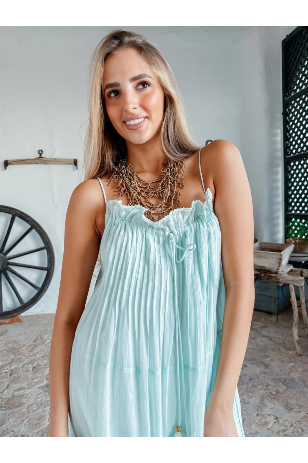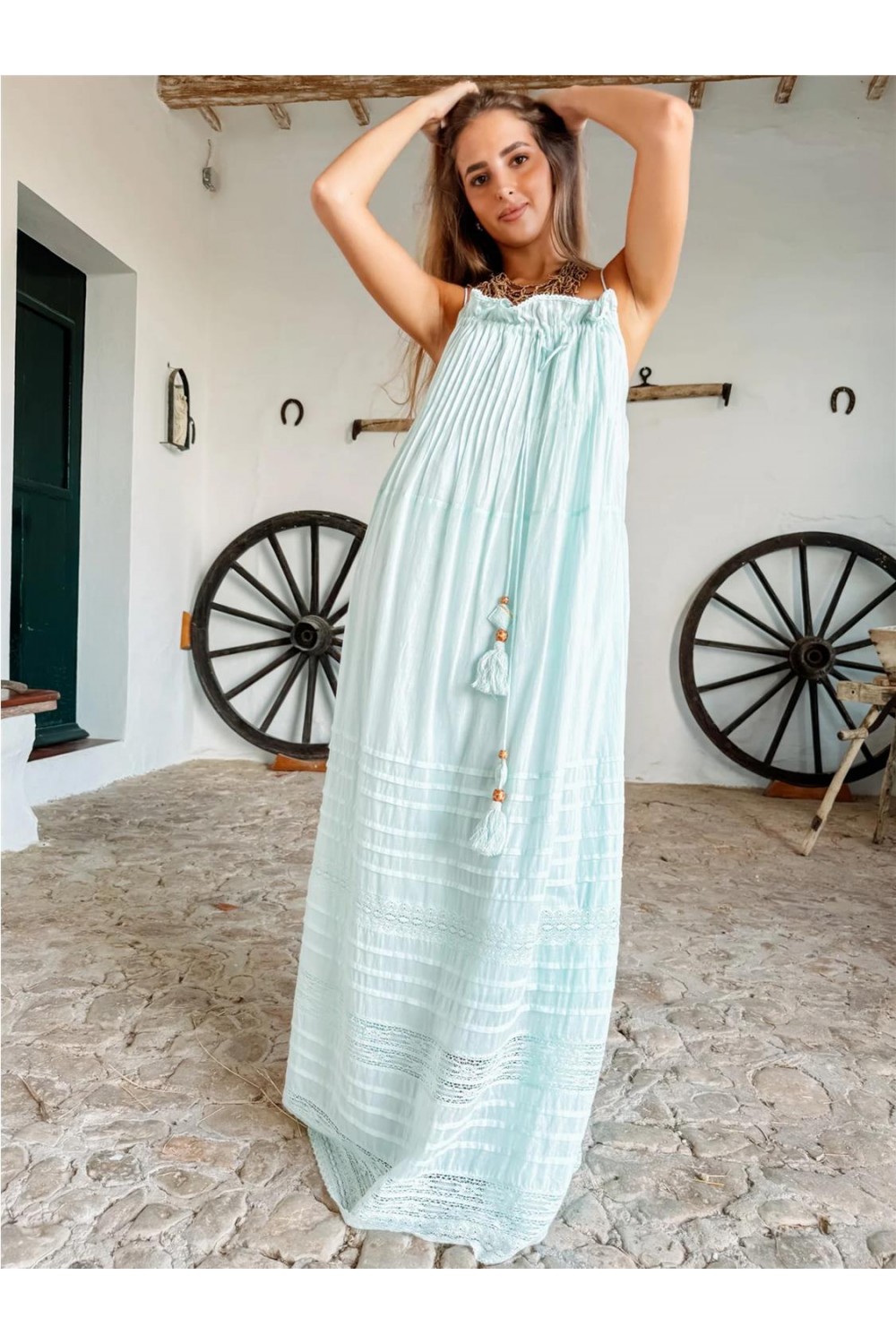 Vestido largo de mujer Favaritx Poc A Poc tirantes finos fluido blanco camel menta M262400601