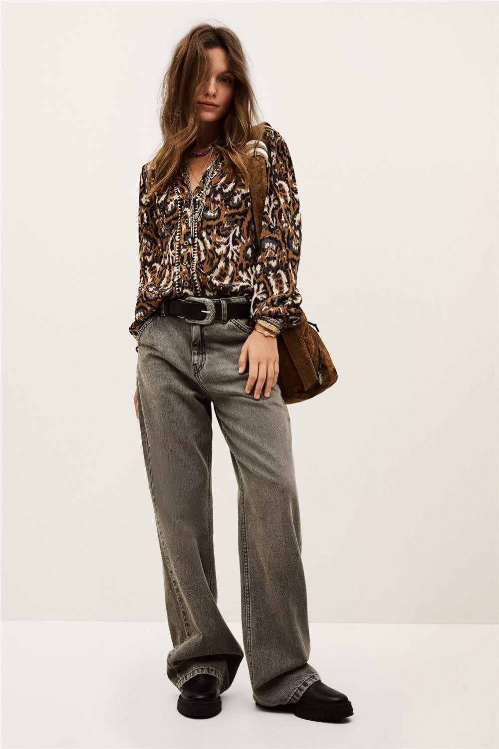 Blusa de mujer Onada bash escote V estampado étnico crudo ocre 1H25ONAD