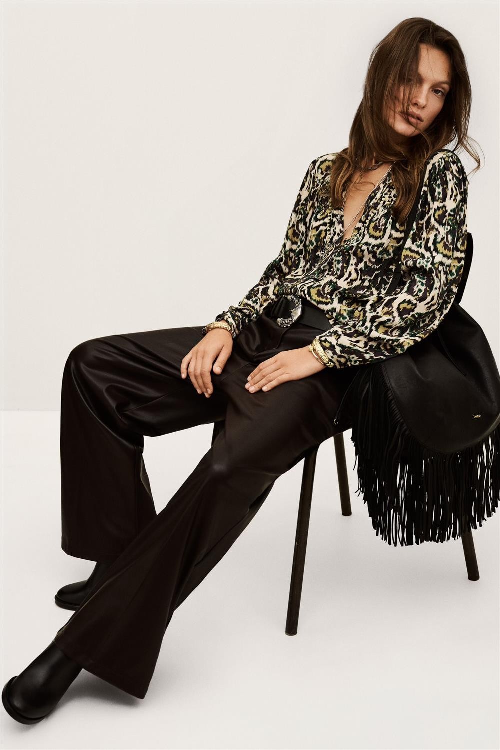 Blusa de manga larga, escote V y estampado étnico. Composición: 100% viscosa.