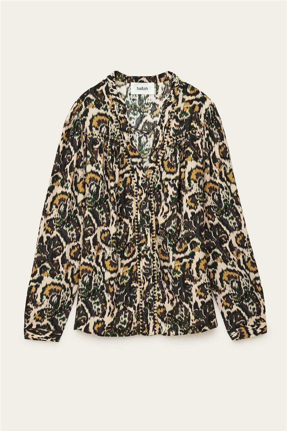 Blusa de mujer Onada bash escote V estampado étnico crudo ocre 1H25ONAD