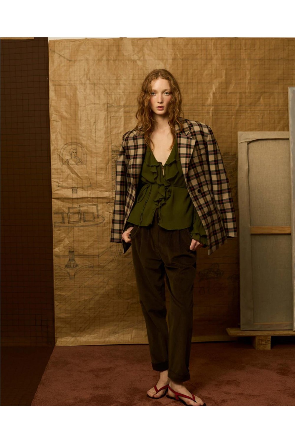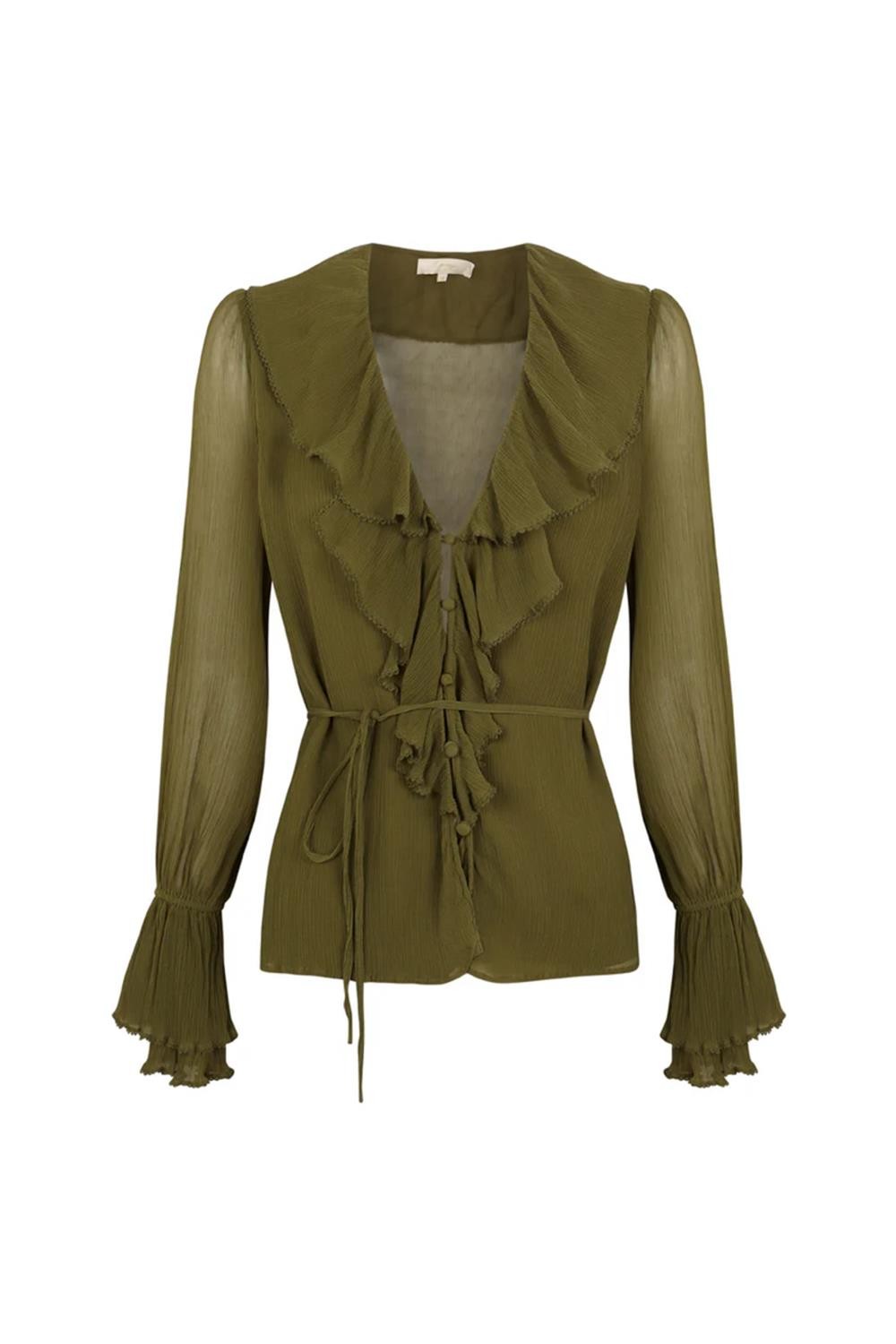 Blusa de mujer volantes Is Coming arrugada romántica volantes verde 125.BLU.1251